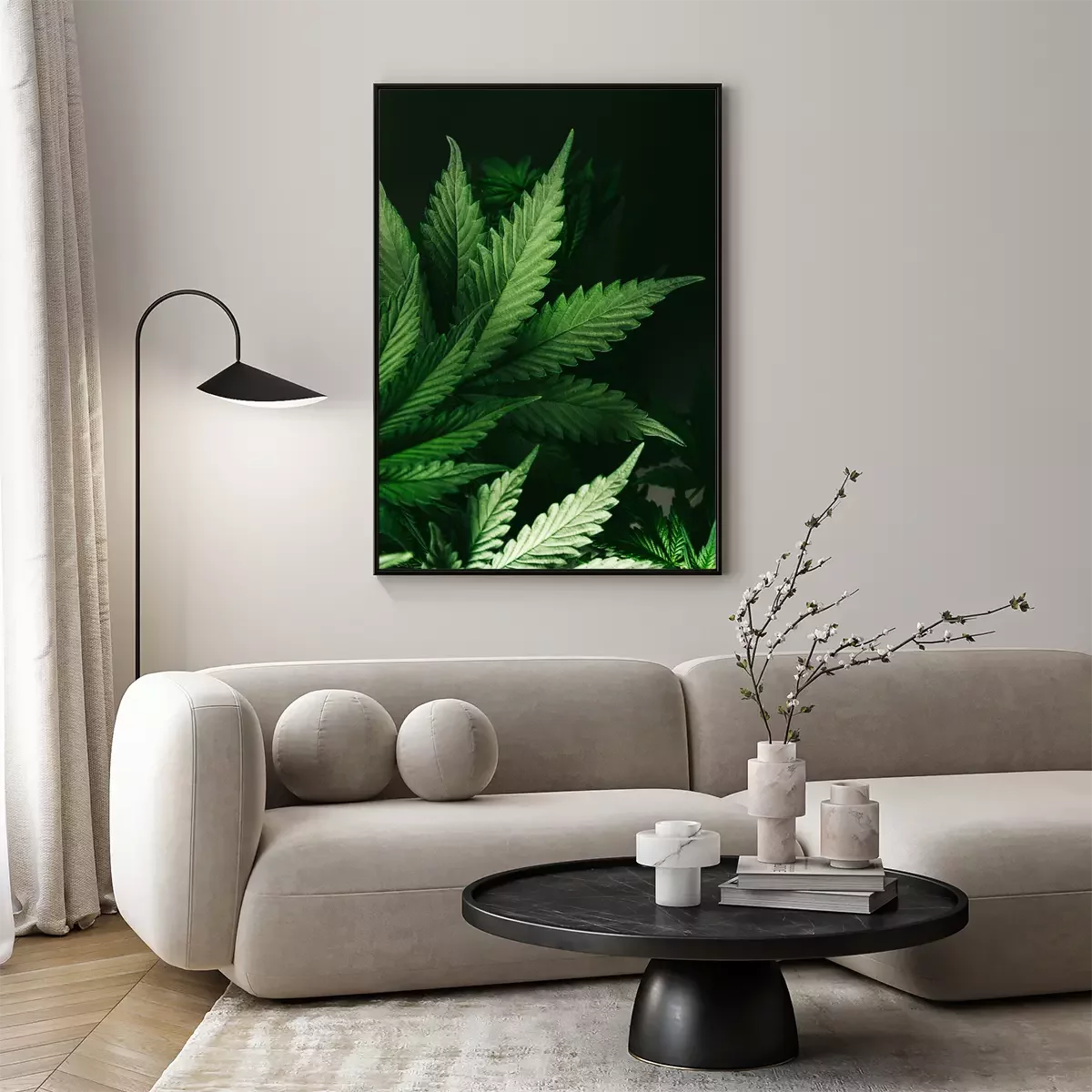 Poster: Marihuana-Blätter vom Licht beleuchtet