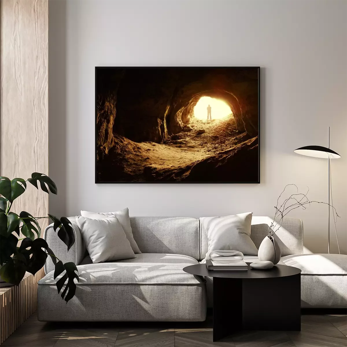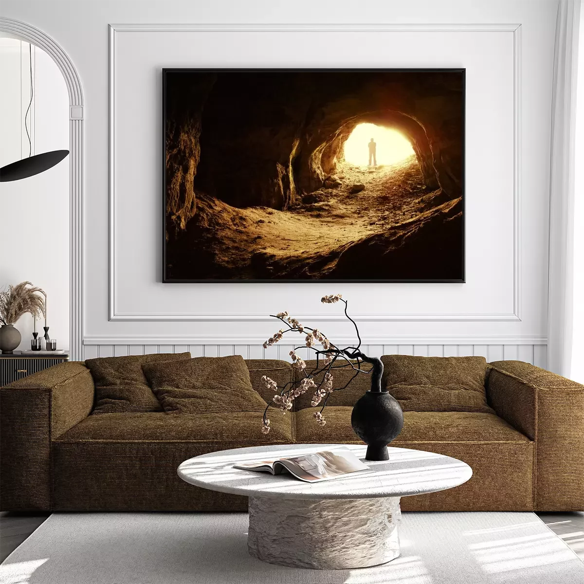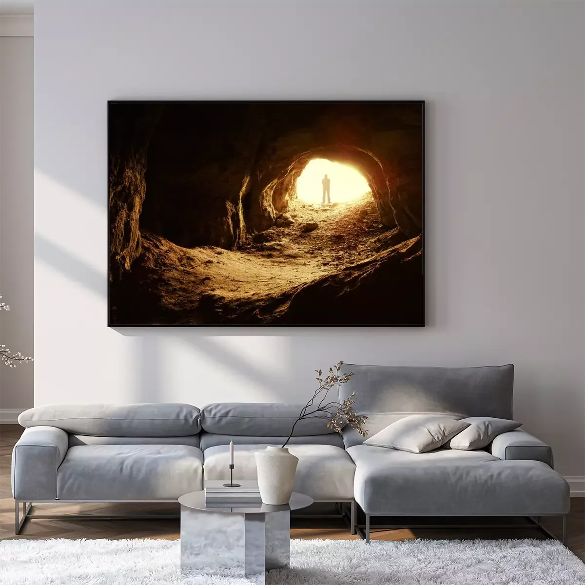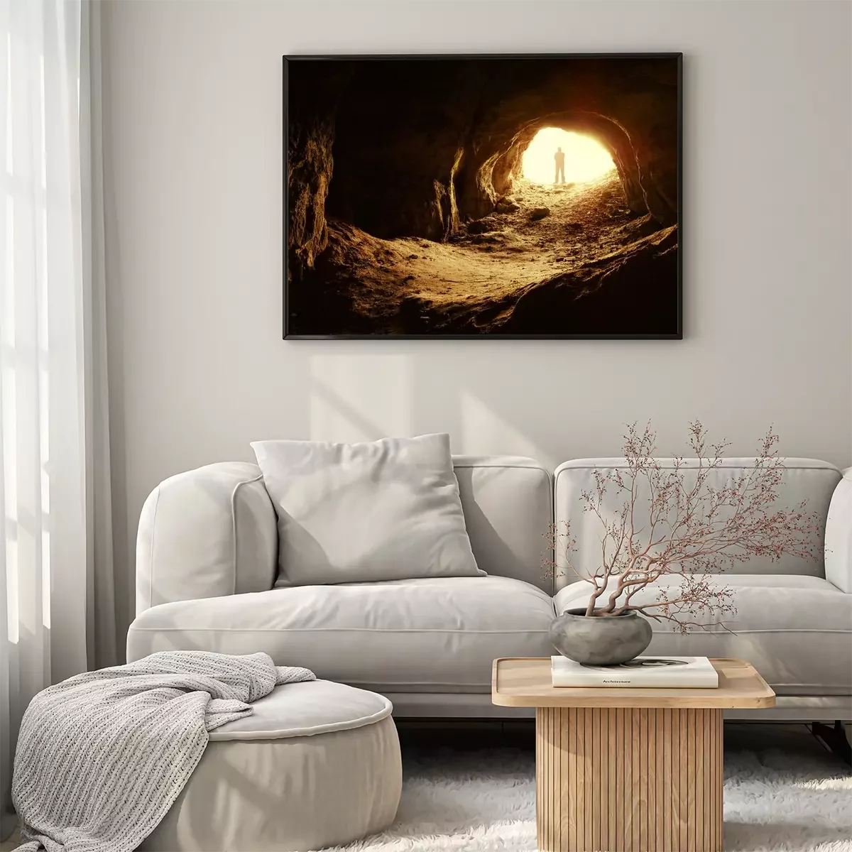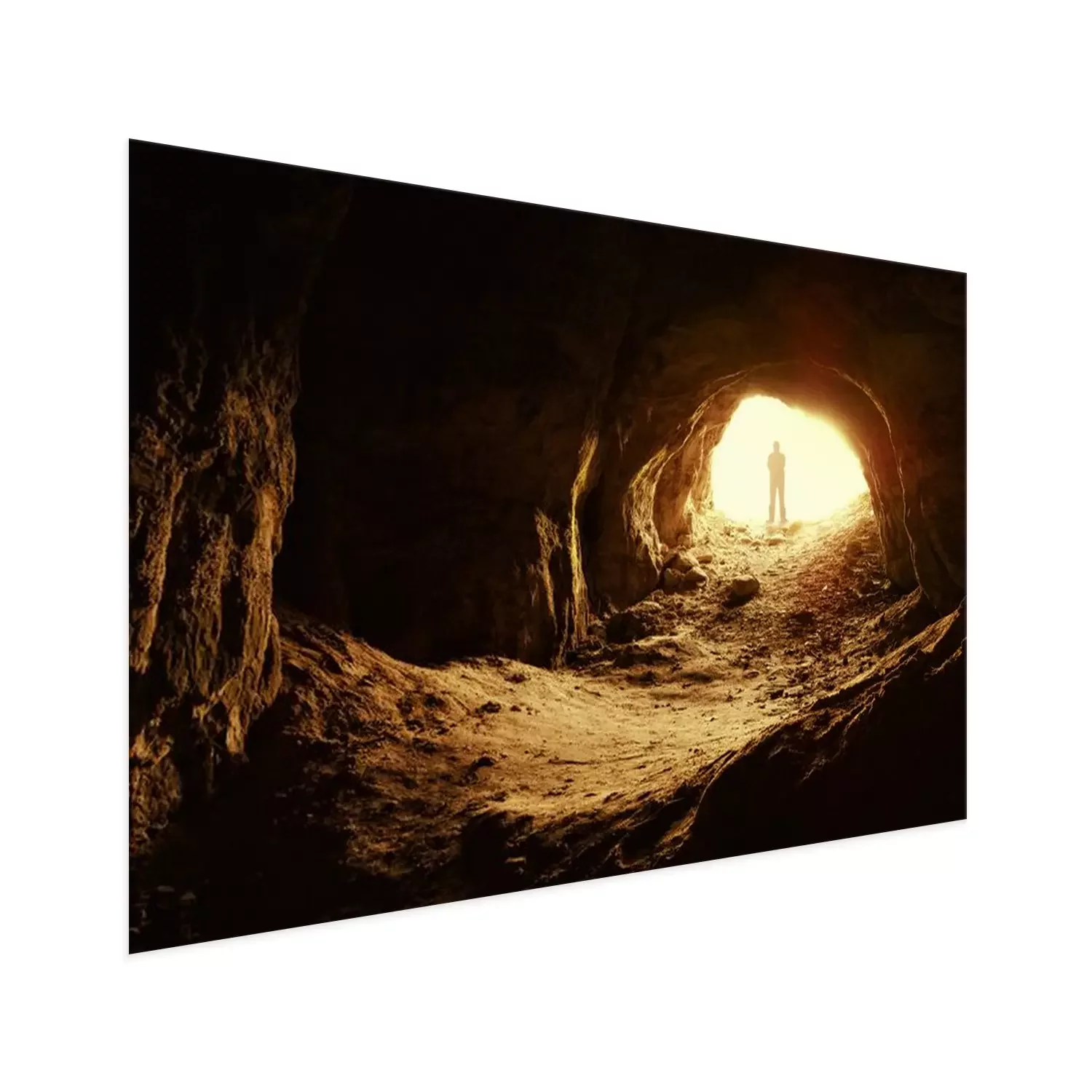 Poster: Mensch am Eingang der beleuchteten Höhle