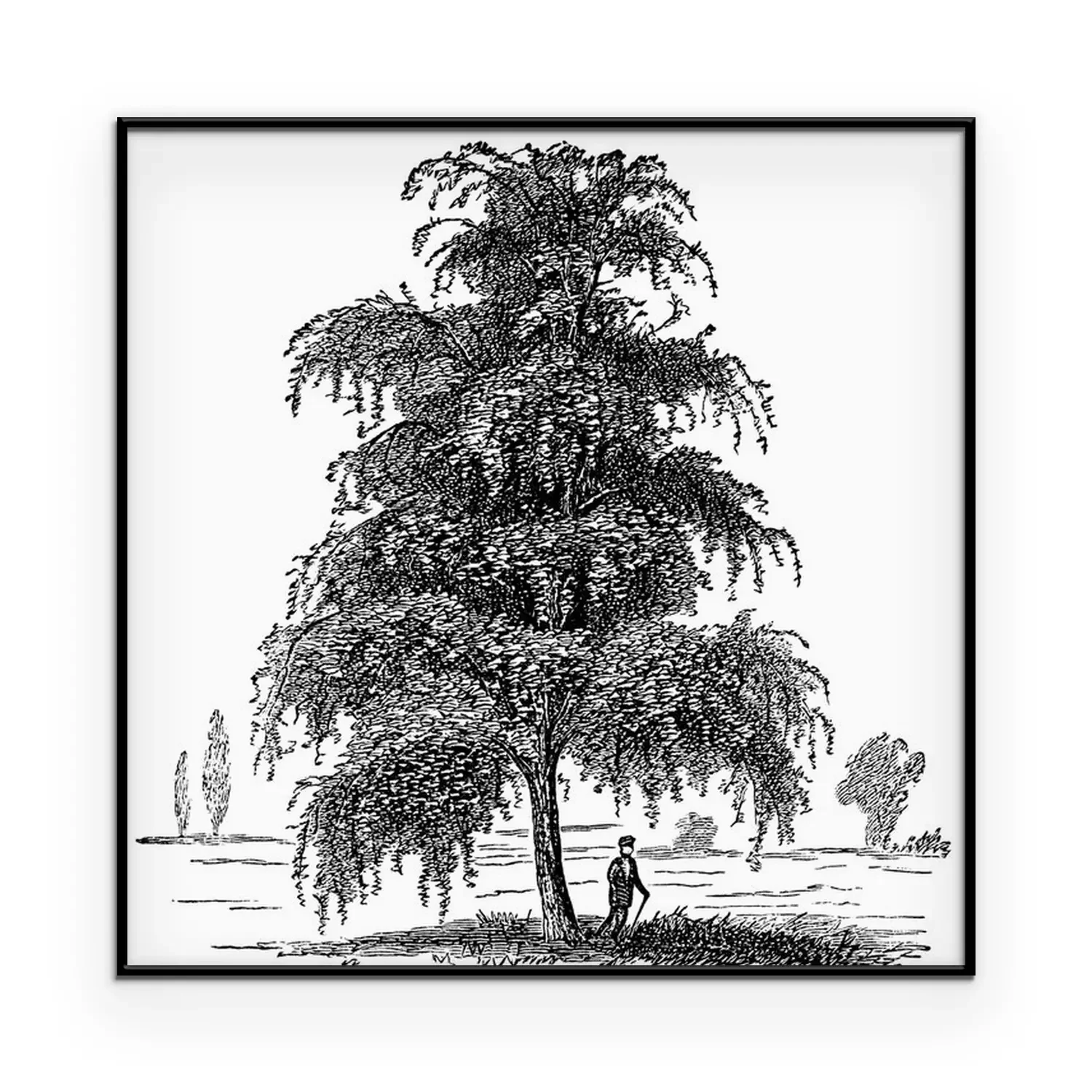 Poster Mensch unter der ausgebreiteten Birke Retro-Illustration