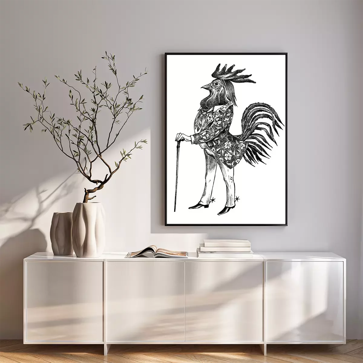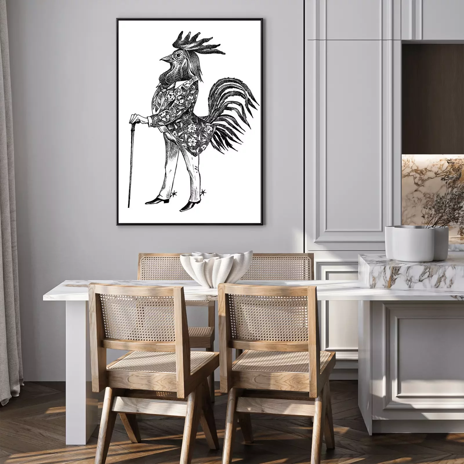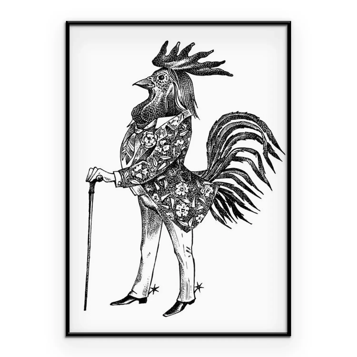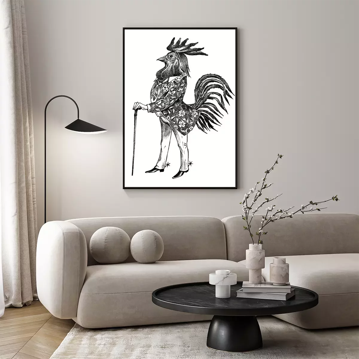 Poster Menschliche Figur mit Kopf eines Hahns Zeichnung