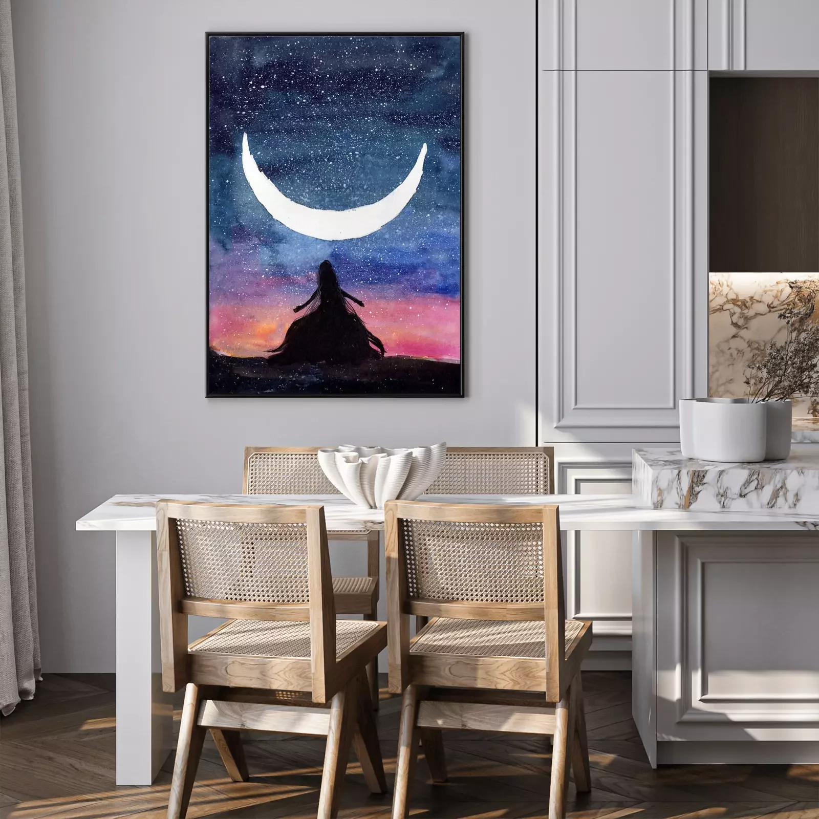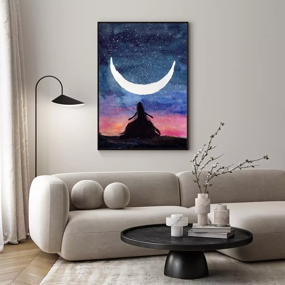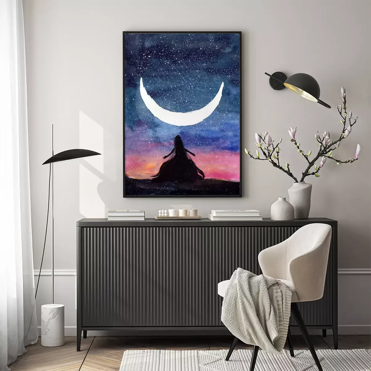 Poster Million Sternen und eine weibliche Figur