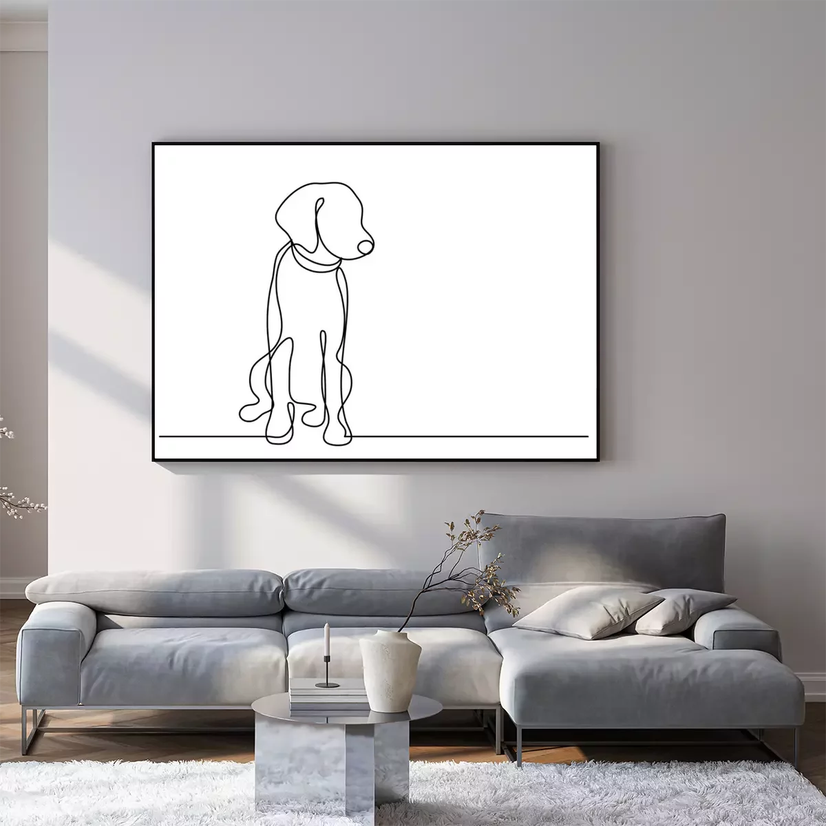 Poster: Minimalismus-Hundesilhouette auf weißem Hintergrund