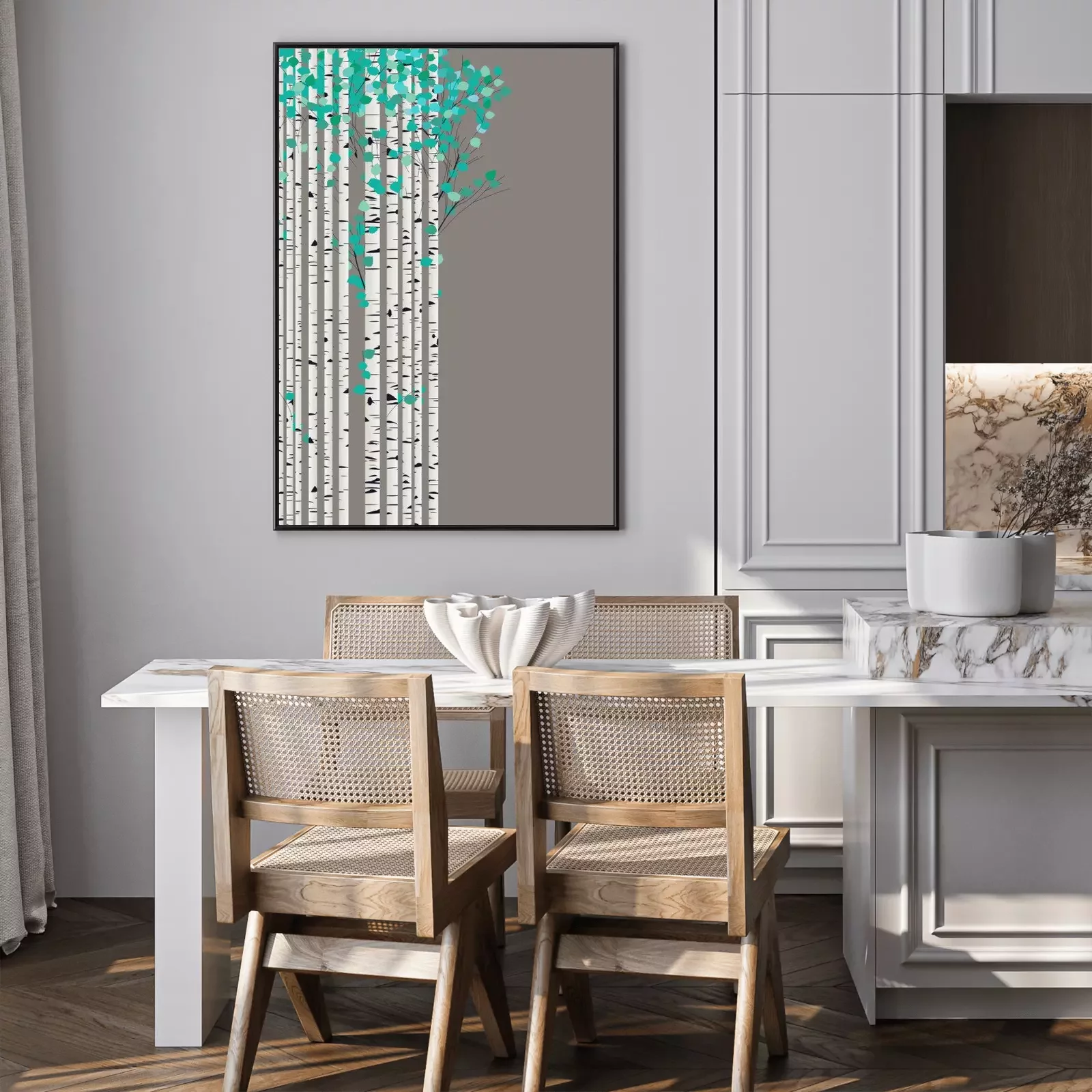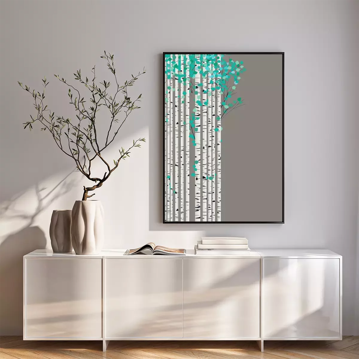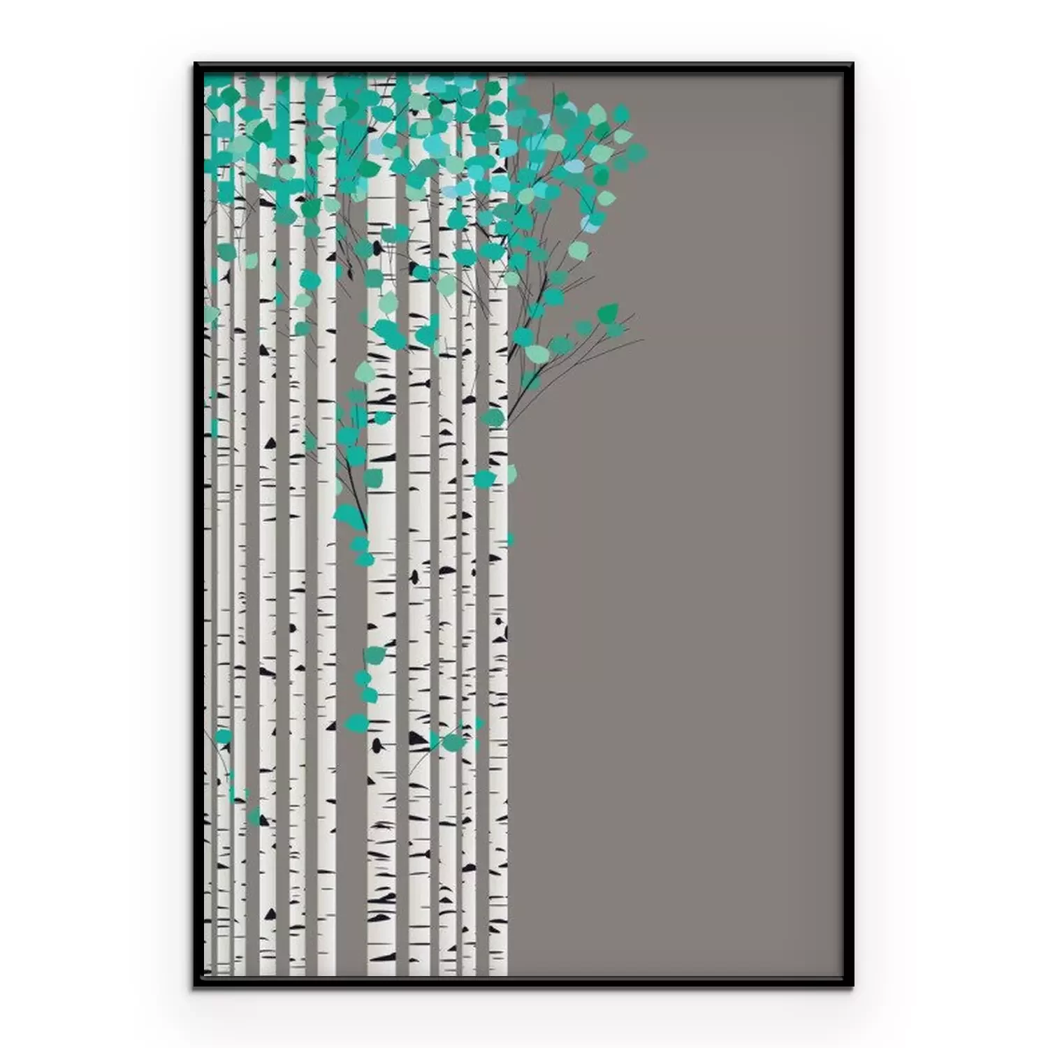 Poster: Minimalistische Birken auf grauem Hintergrund
