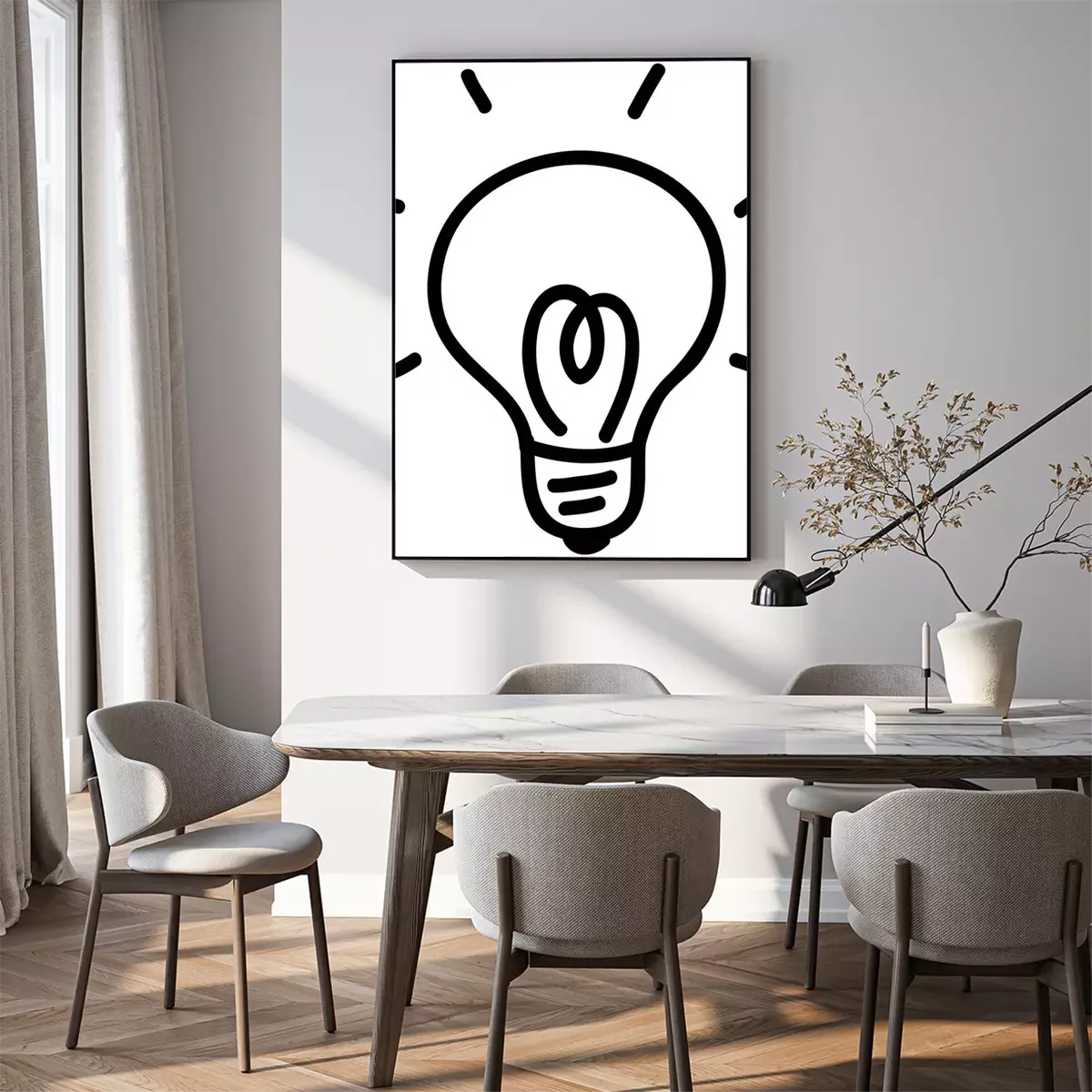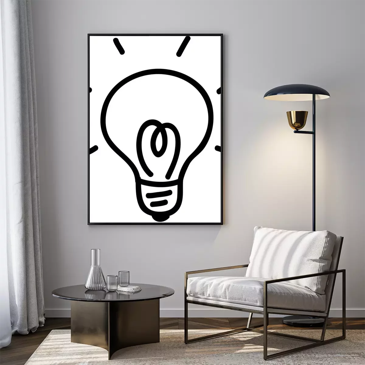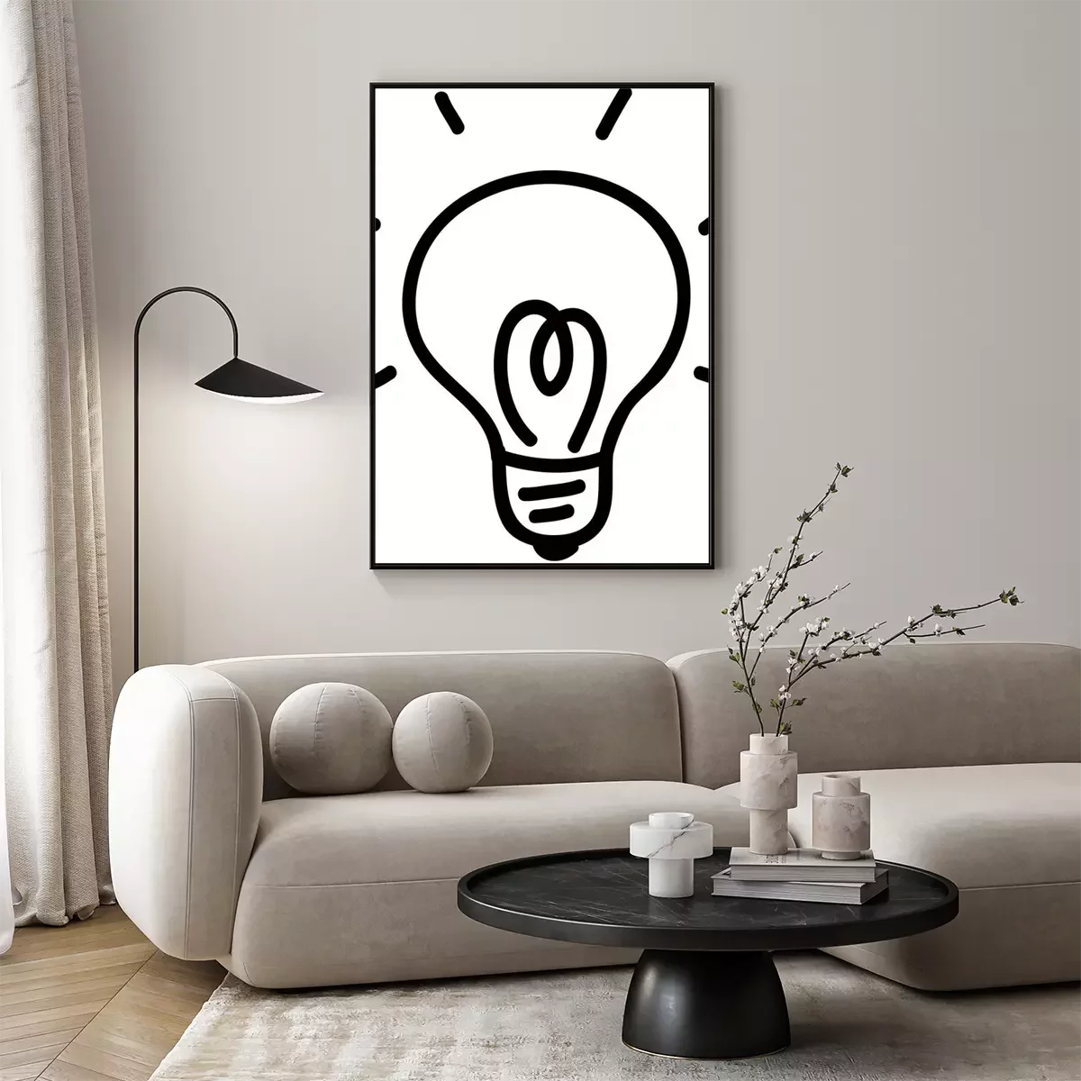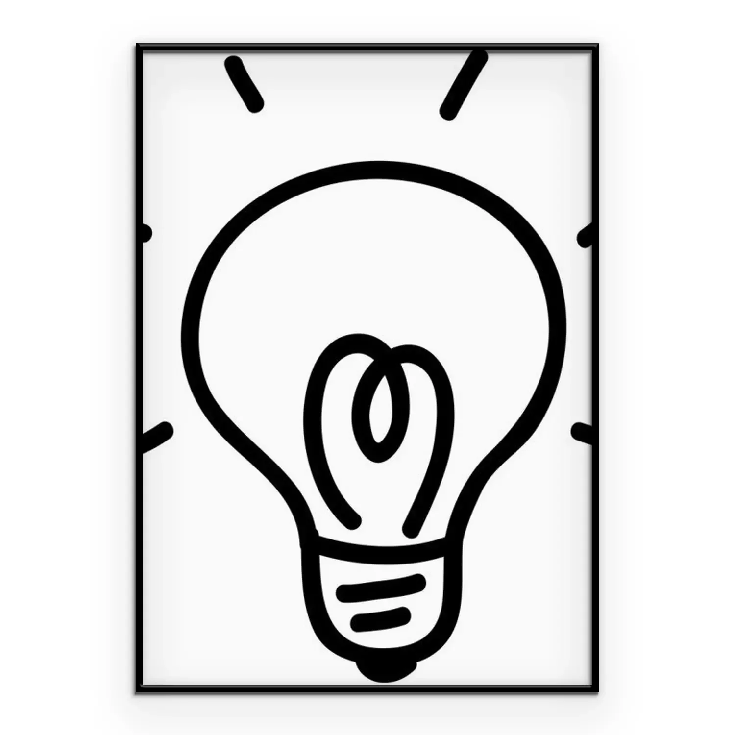 Poster: Minimalistische Glühbirnengrafik in Schwarz und Weiß