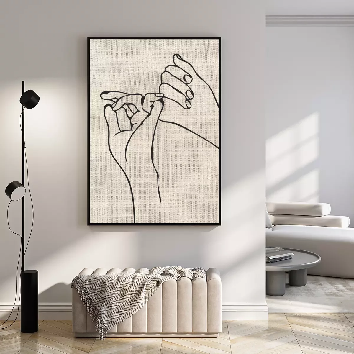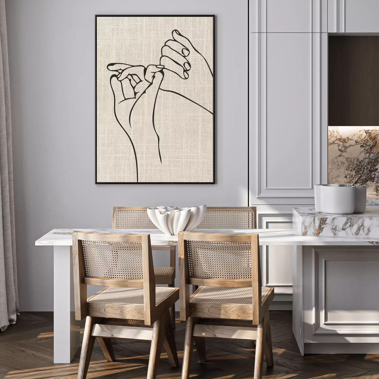 Poster: Minimalistische Handzeichnung im Line Art Stil auf Stoffhintergrund