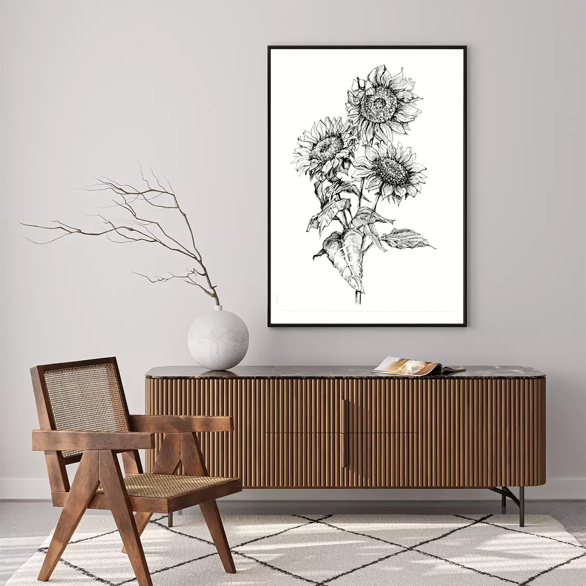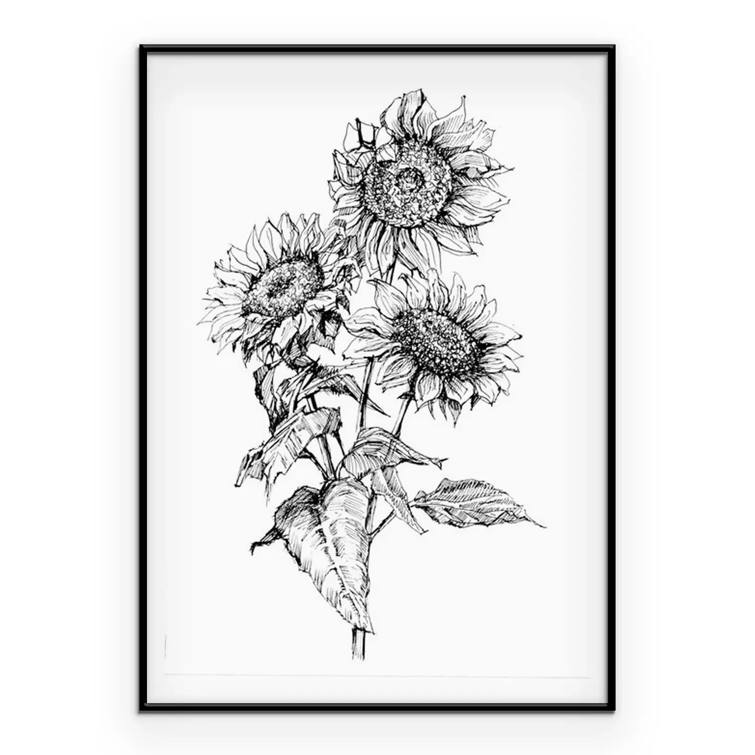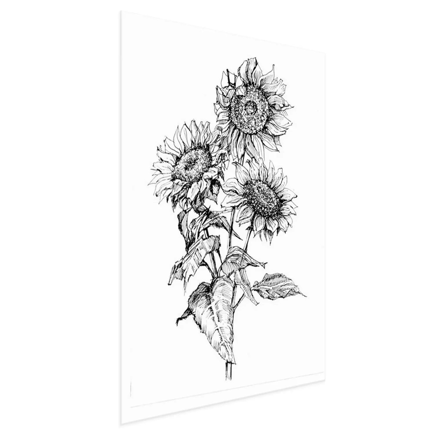 Poster: Minimalistische Sonnenblumen mit schwarzem Strich gemalt