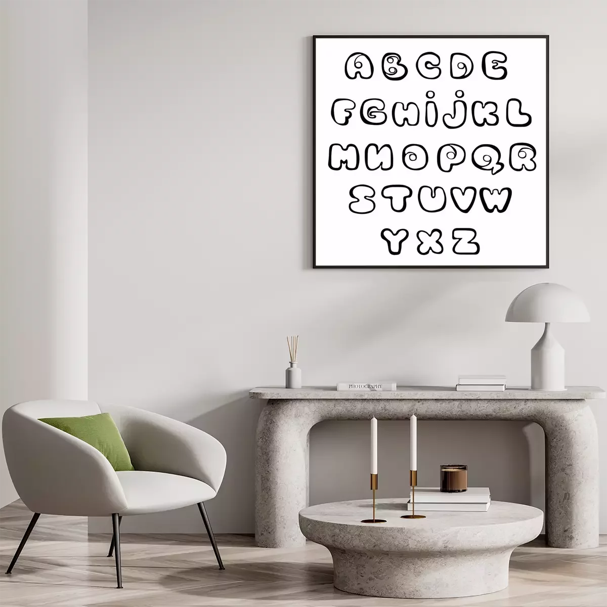 Poster: Minimalistisches Alphabet auf weißem Hintergrund
