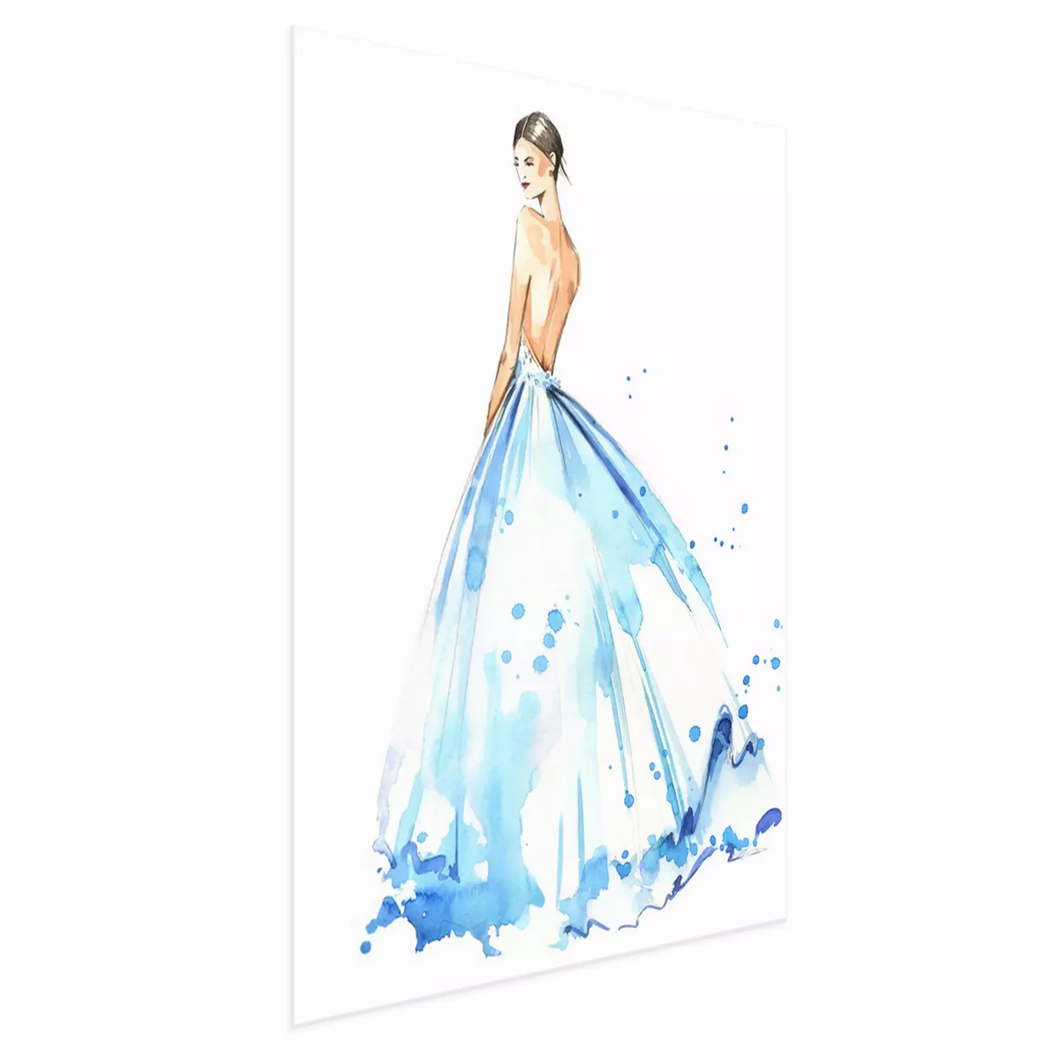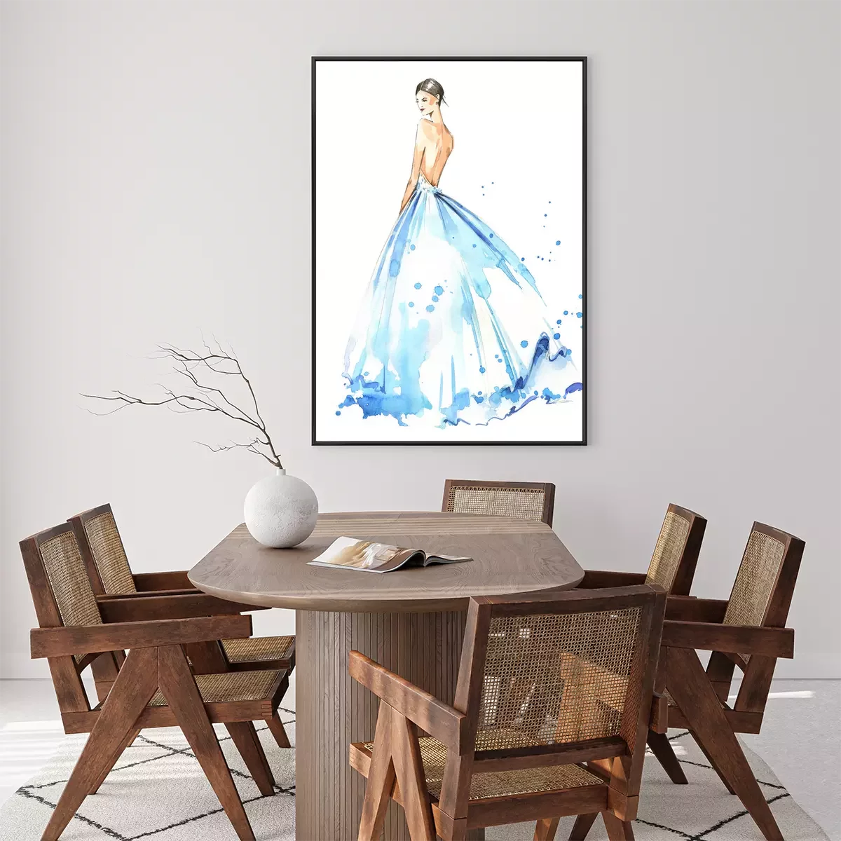 Young woman wearing long evening dress, bride. Watercolor illustration