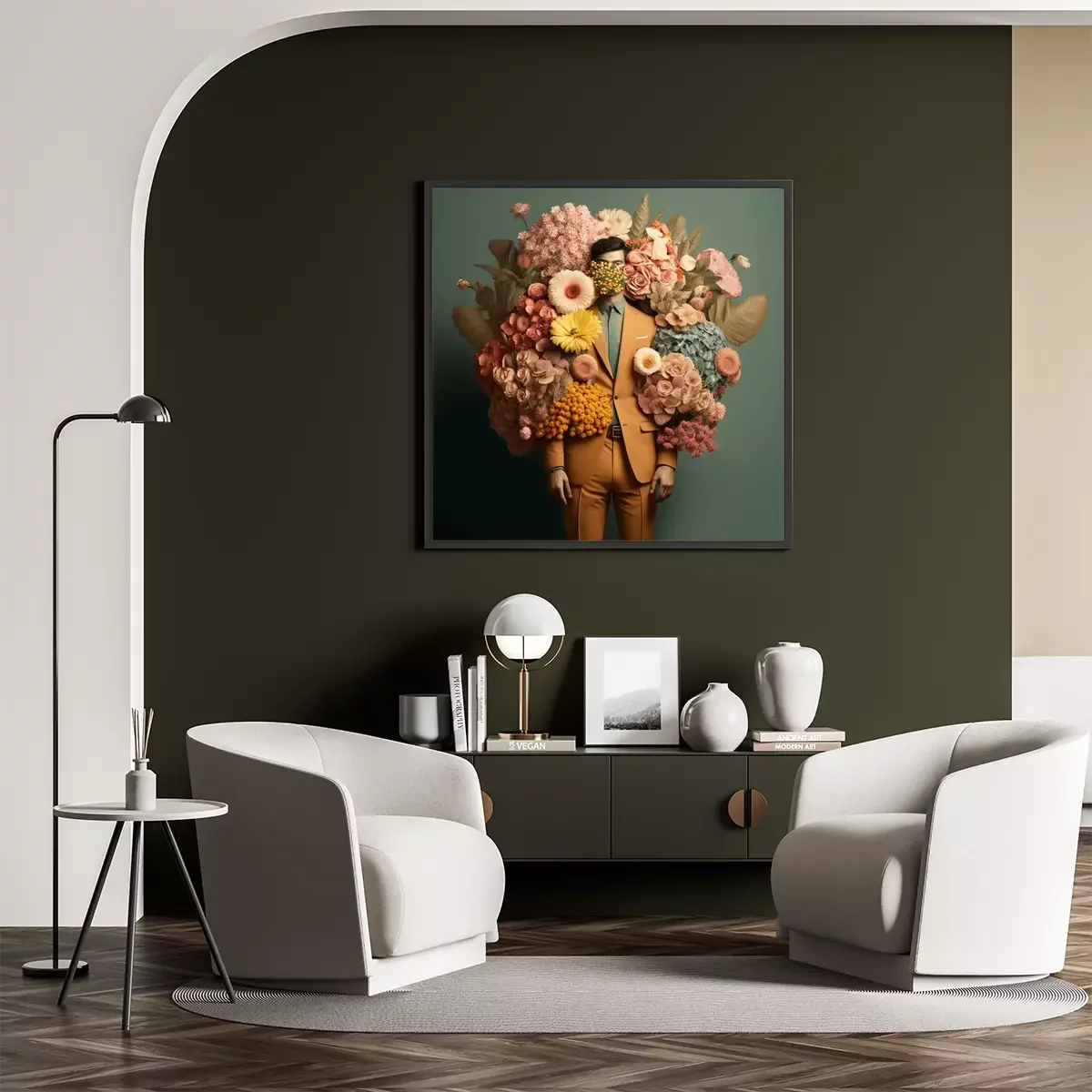 Poster Modell unter Blumen