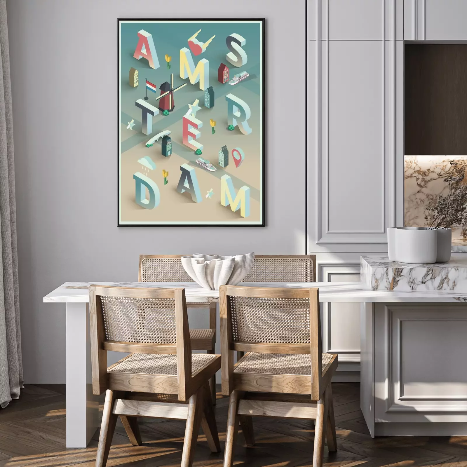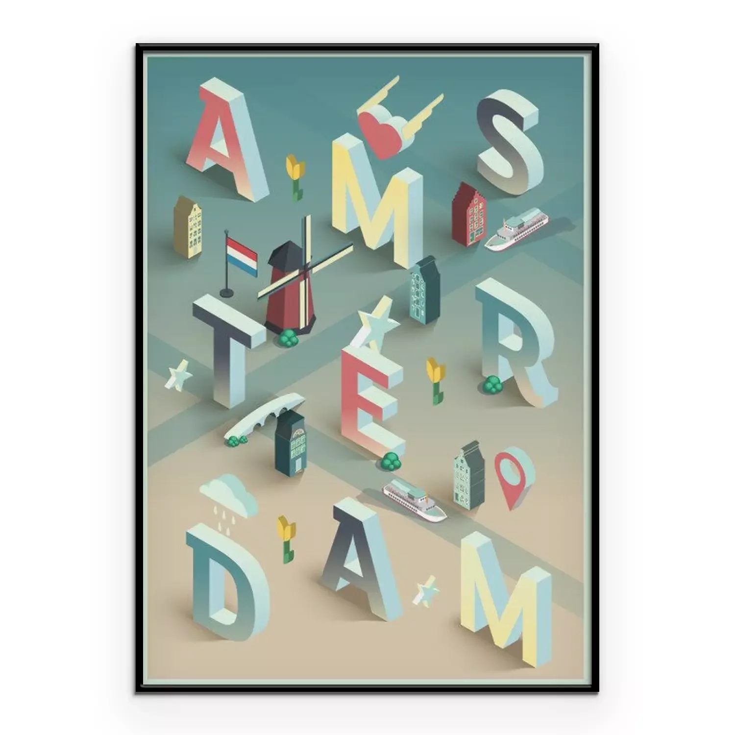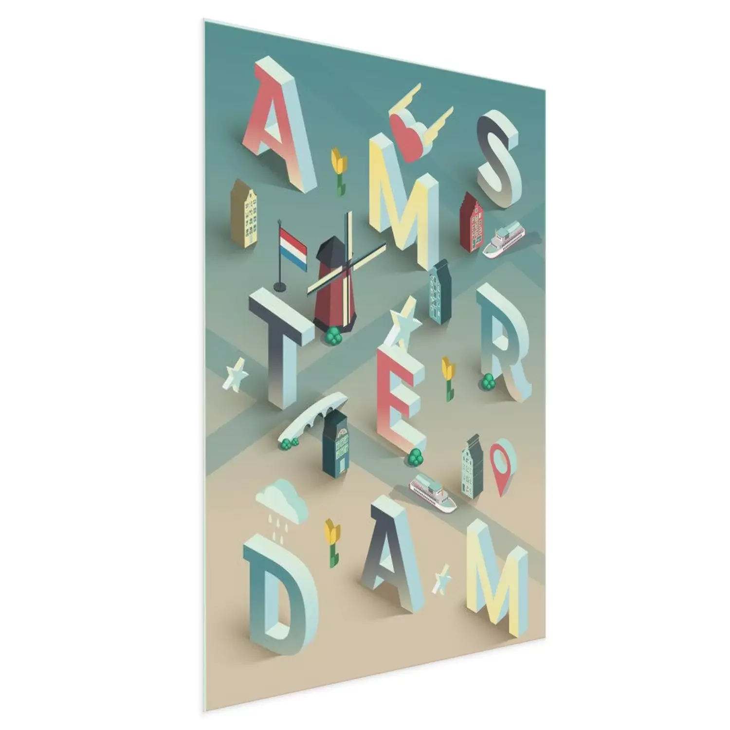 Poster Moderne Typografie 3D-Stadt Amsterdam