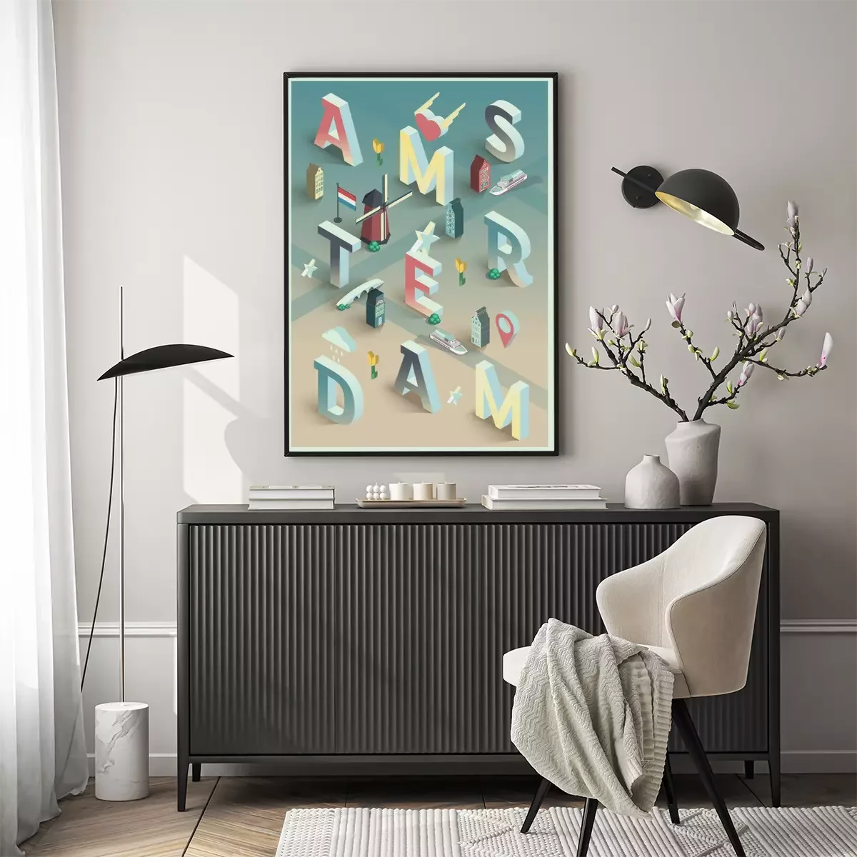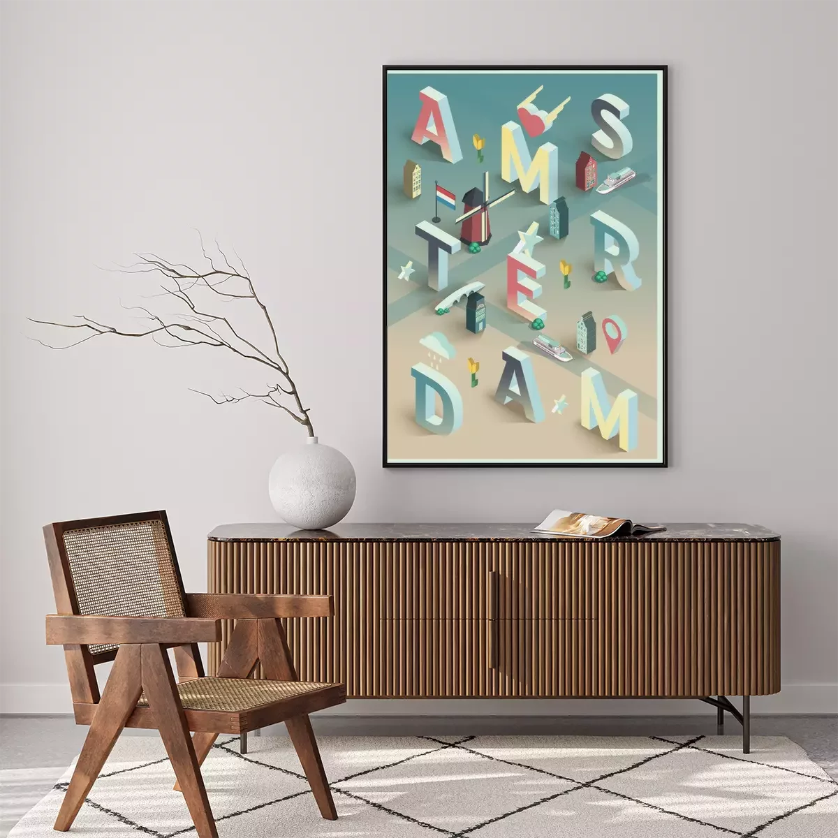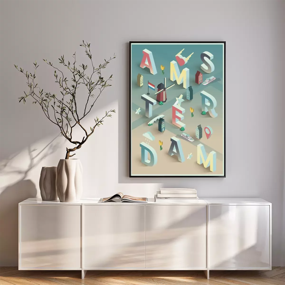 Poster Moderne Typografie 3D-Stadt Amsterdam