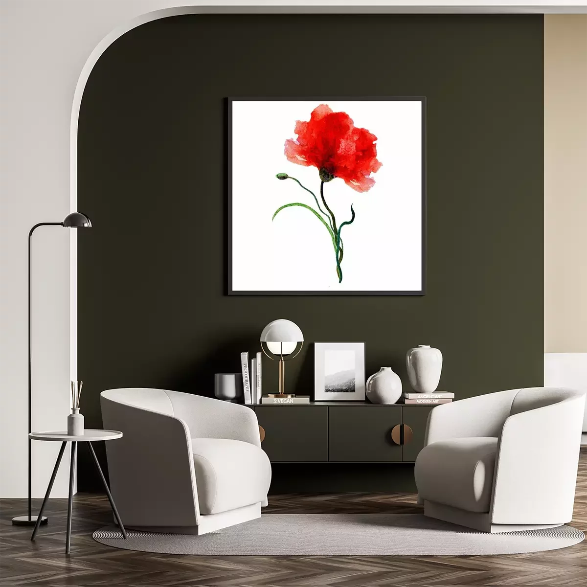 Poster Mohnblume, Aquarell-Illustration isoliert auf weißem Hintergrund
