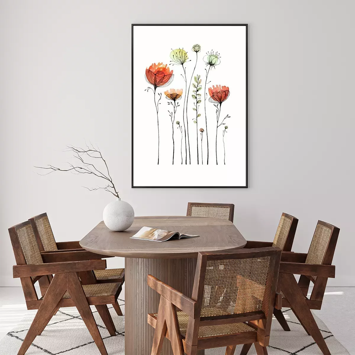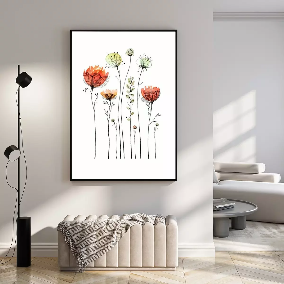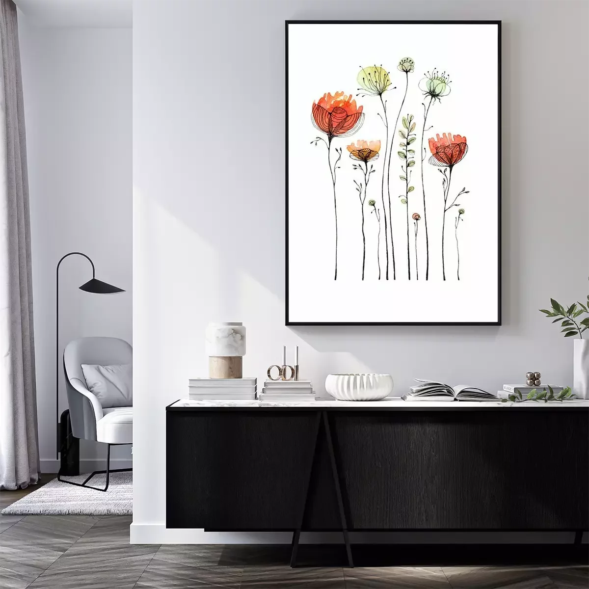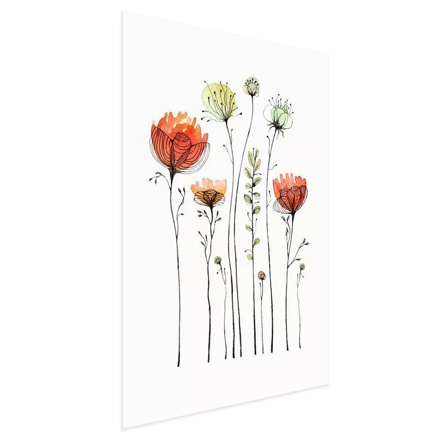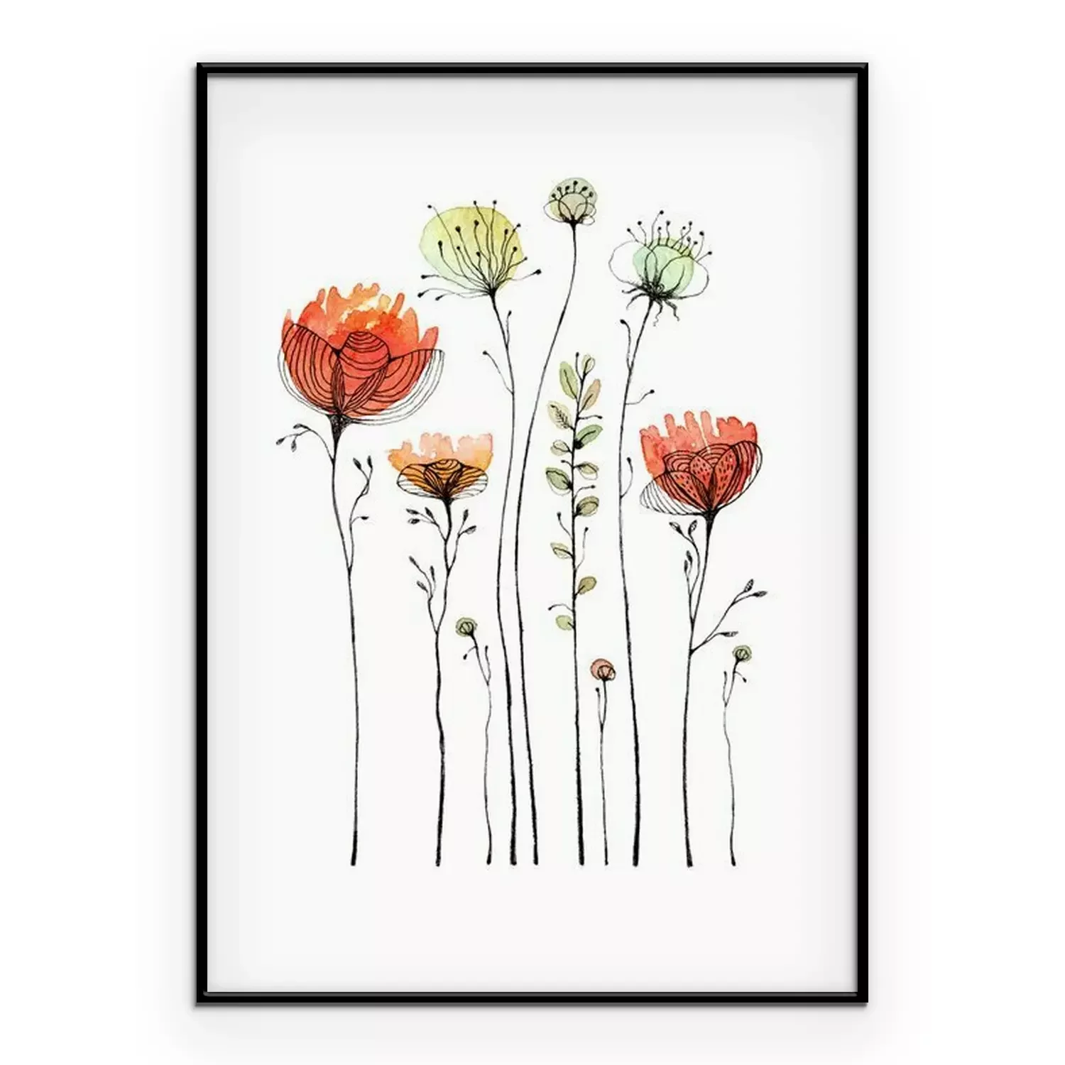 Poster: Mohnblumen auf einem weißen Hintergrund mit einer schwarzen Linie skizziert