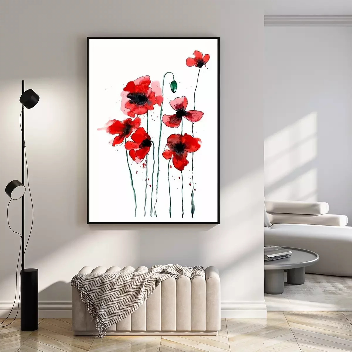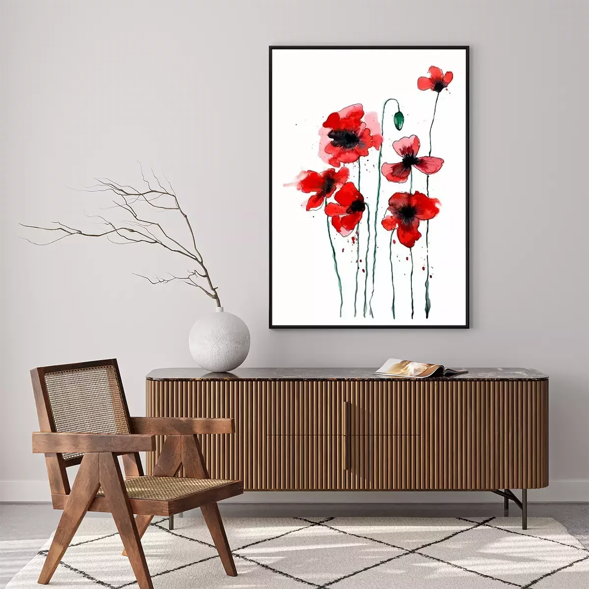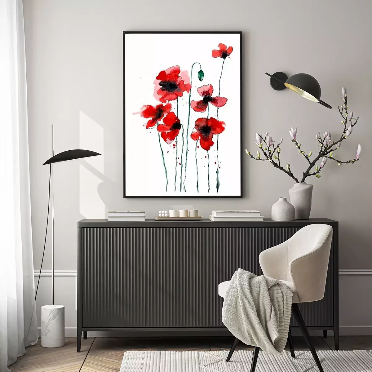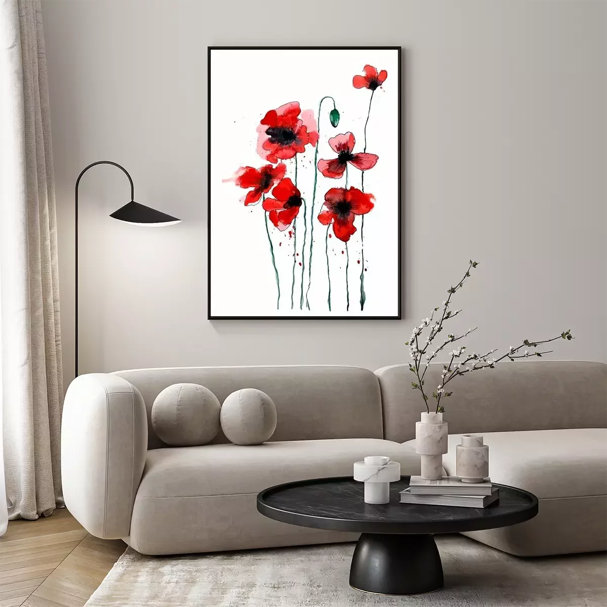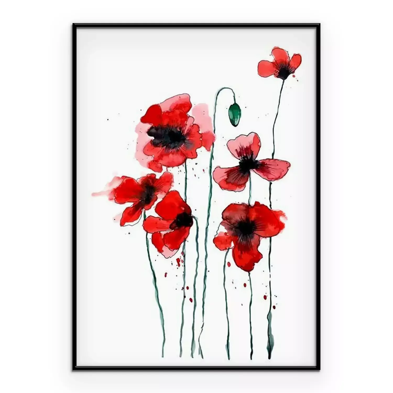 Poster: Mohnblumen auf weißem Hintergrund Aquarellmalerei