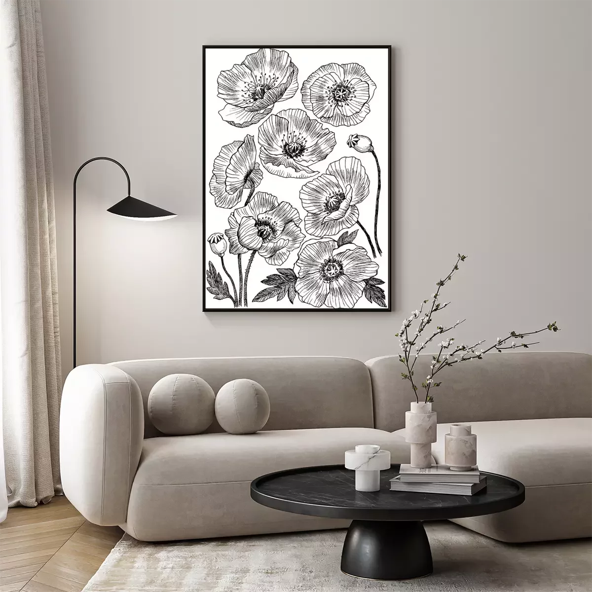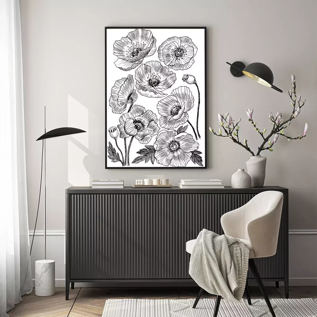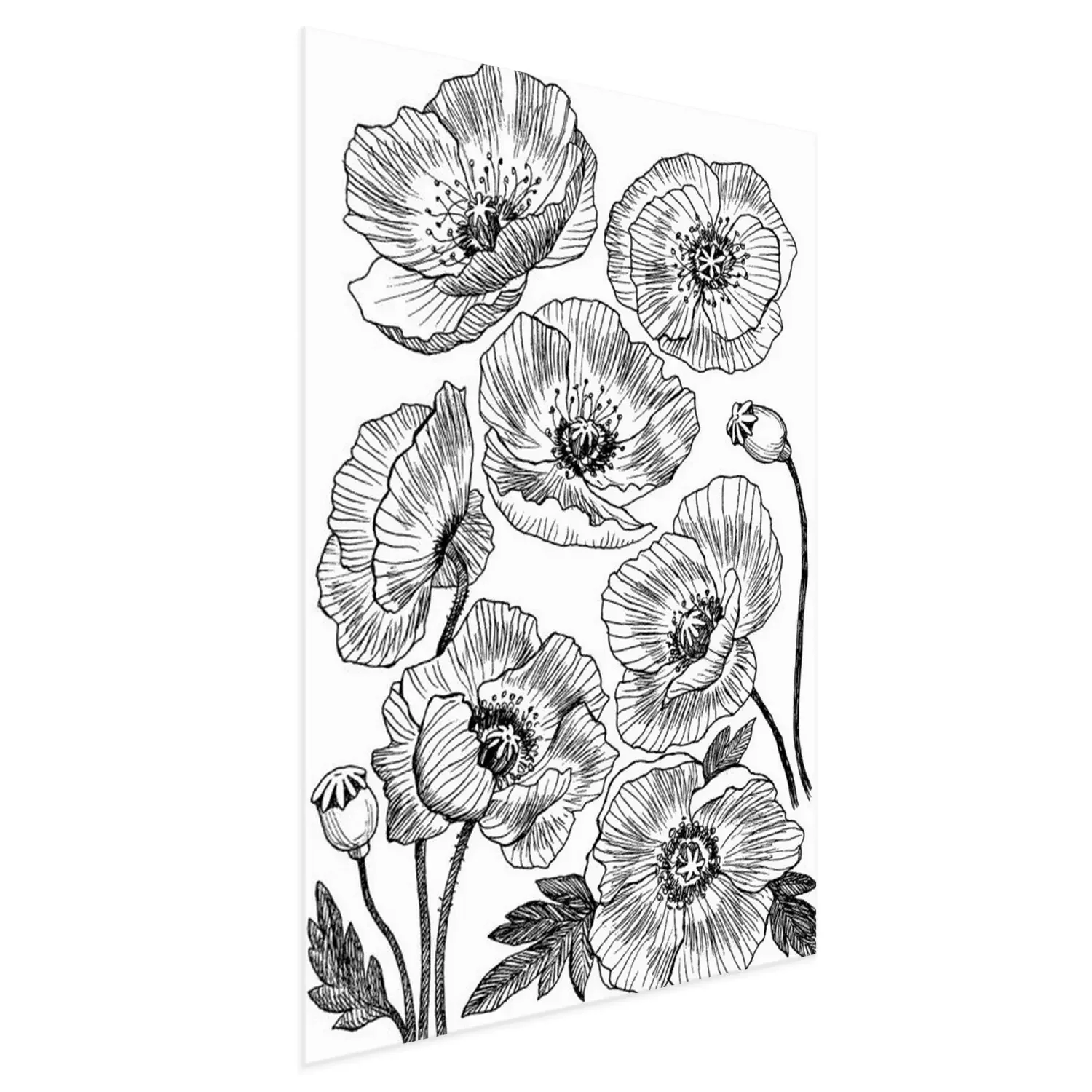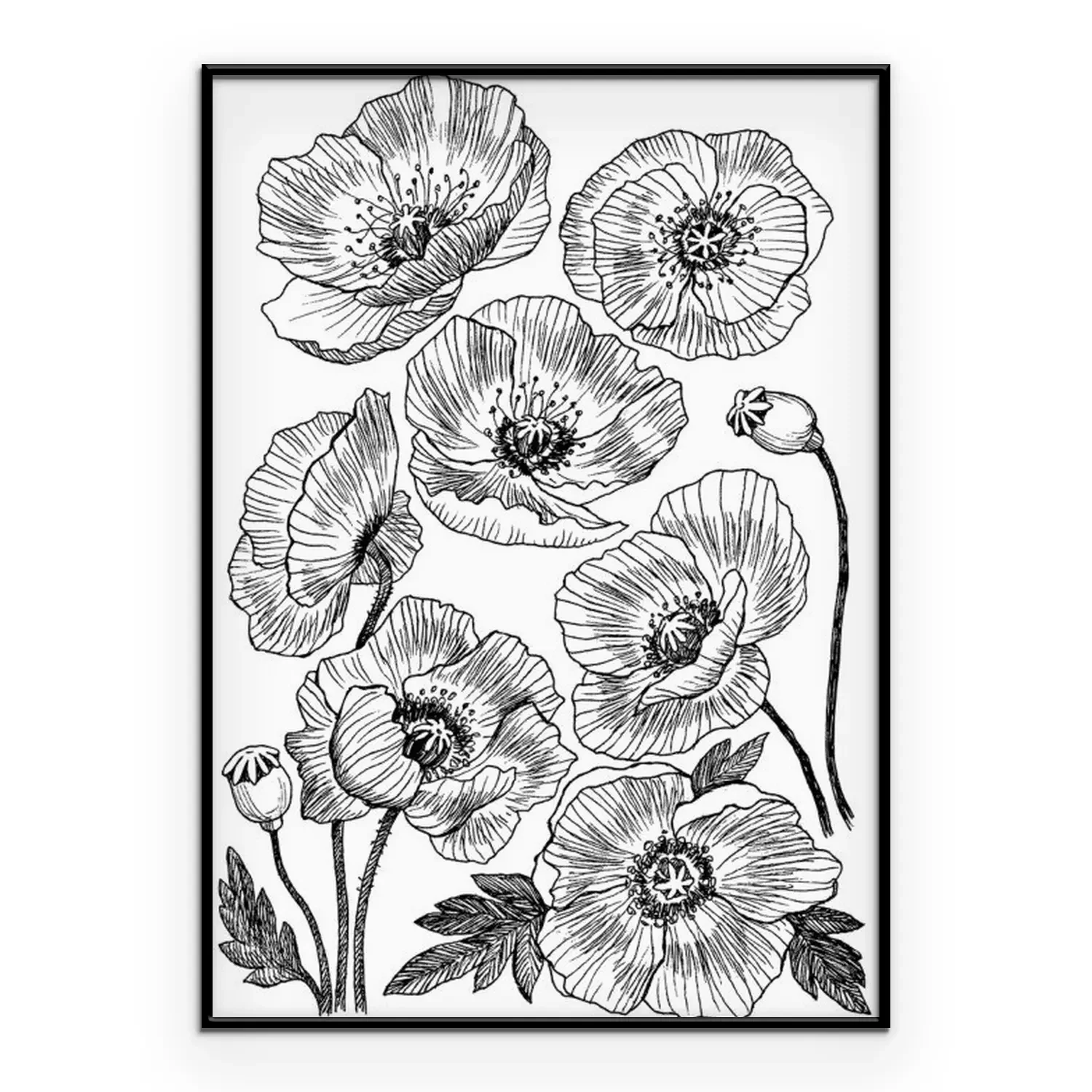 Poster: Mohnblumen auf weißem Hintergrund mit Bleistift skizziert