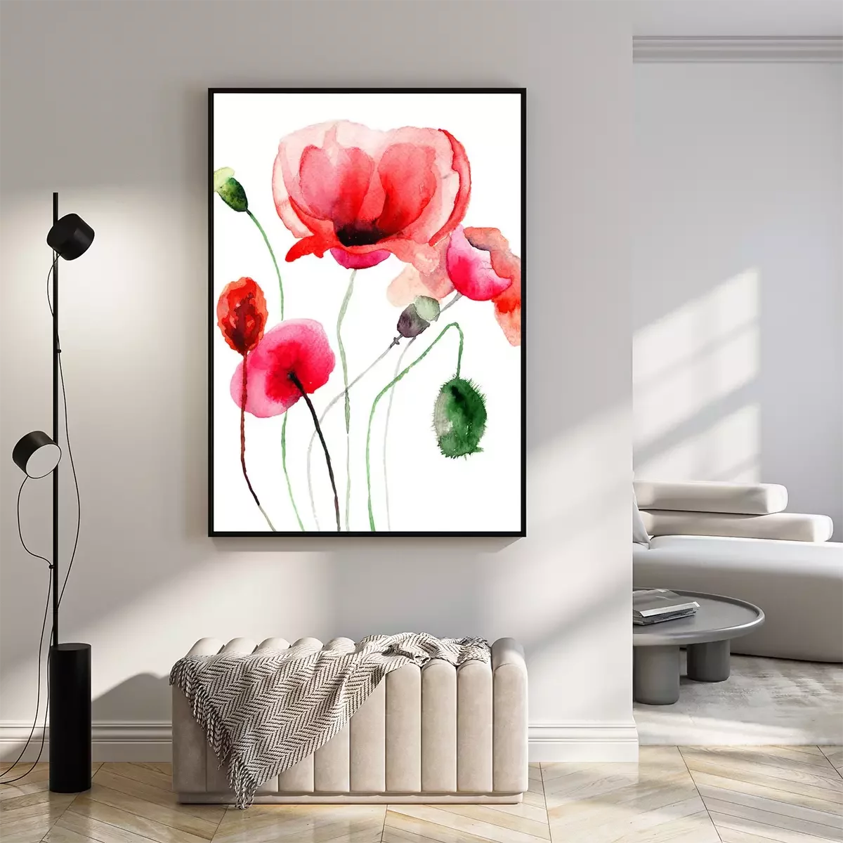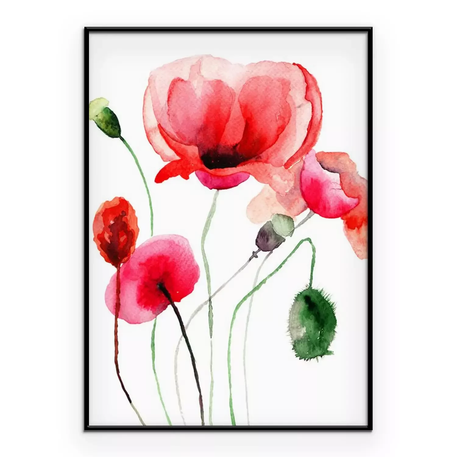 Poster: Mohnblumen auf weißem Hintergrund verschwommen Aquarell