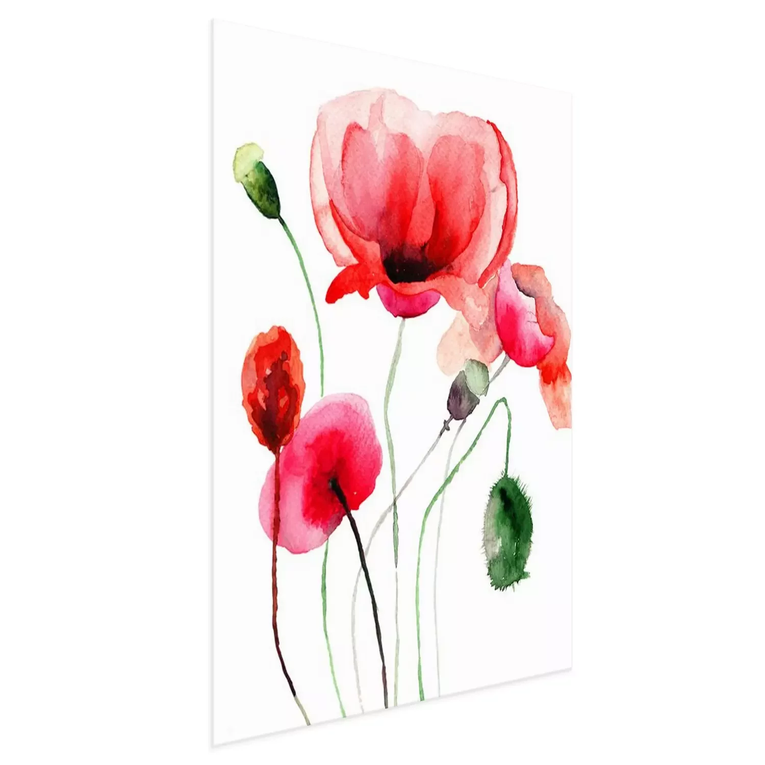 Poster Mohnblumen auf weißem Hintergrund verschwommen Aquarell