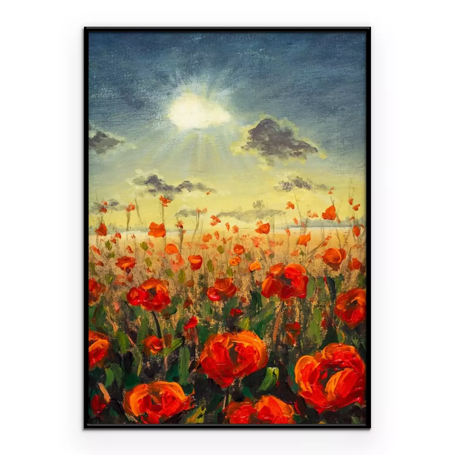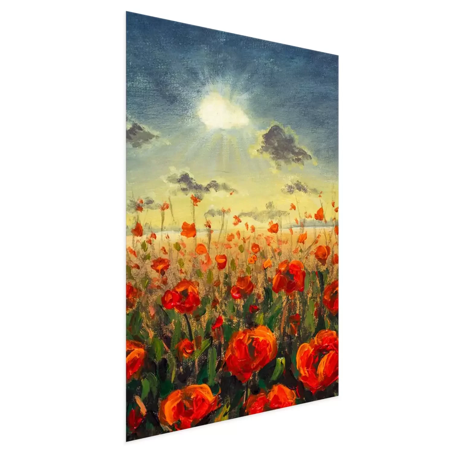Poster: Mohnblumen rot unter einem dunkelblauen Himmel