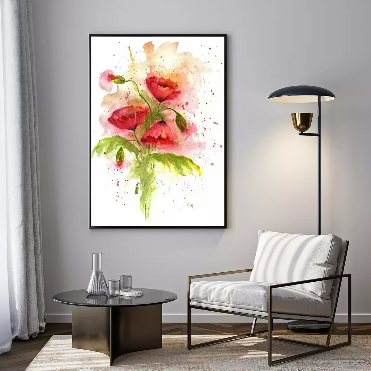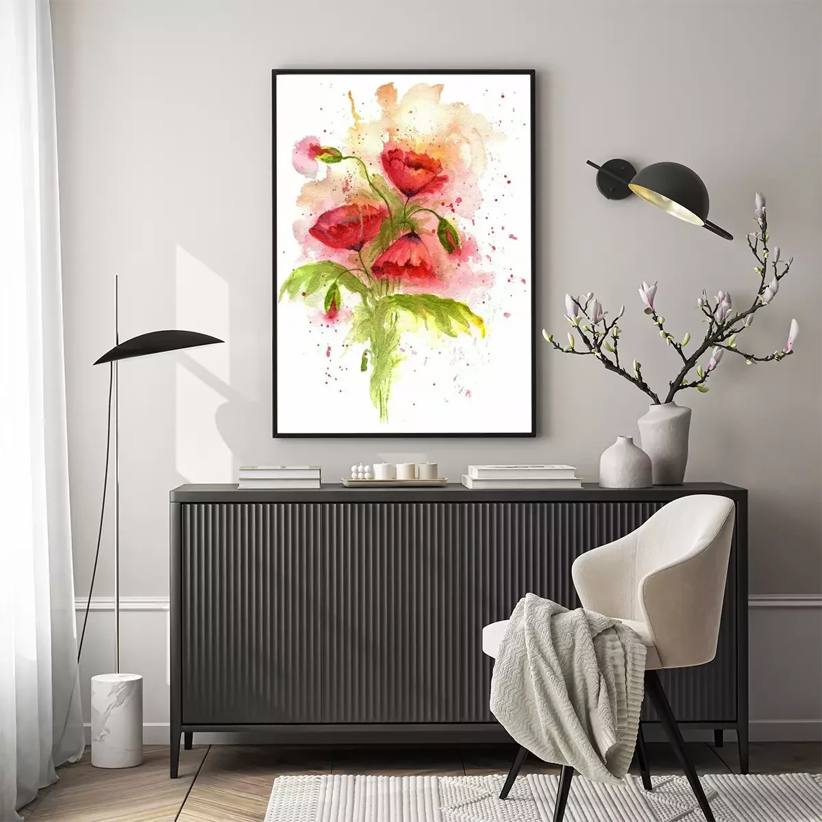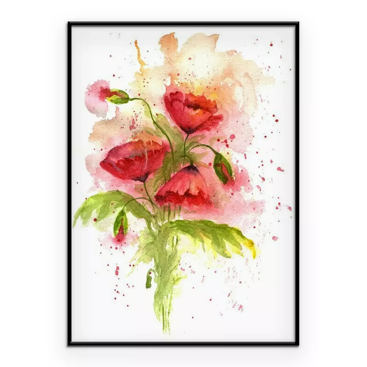 Poster Mohnblumenstrauß mit Farbe bespritzt