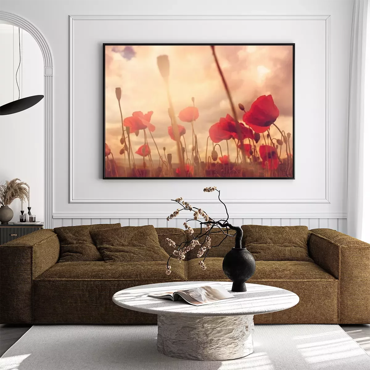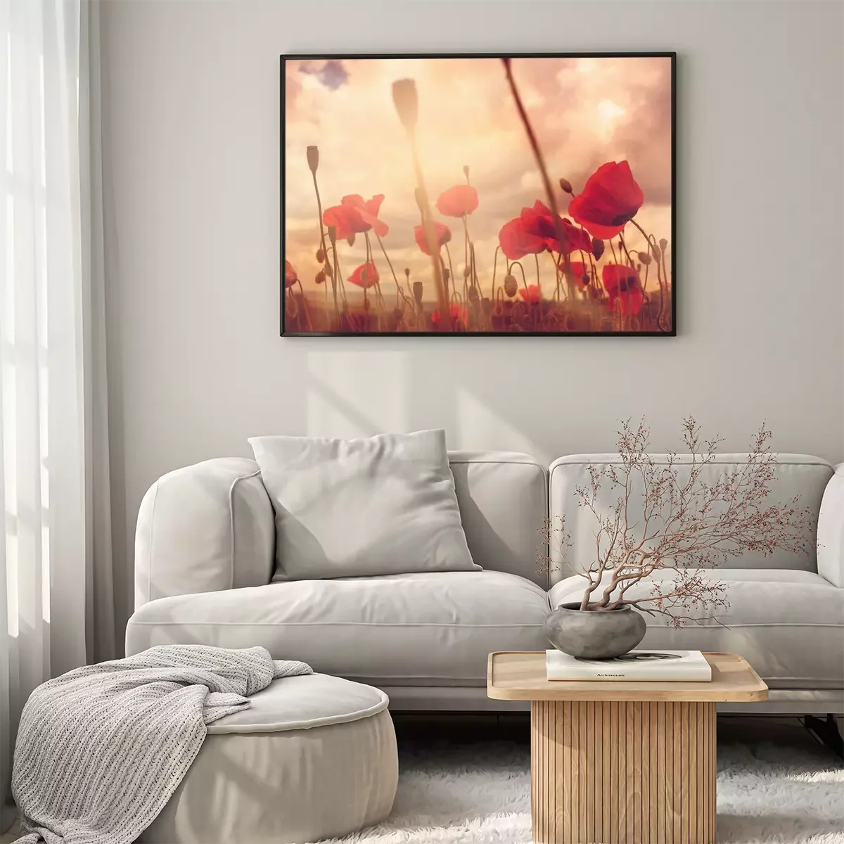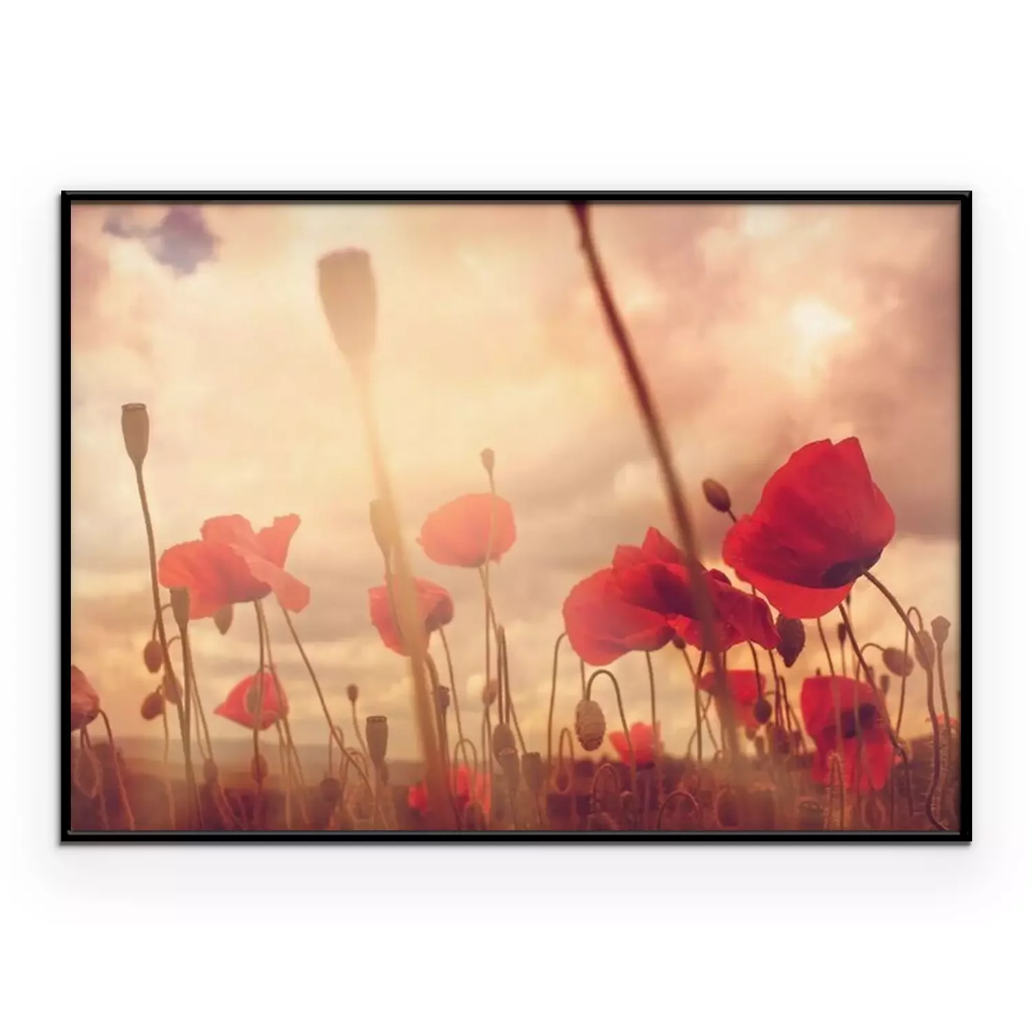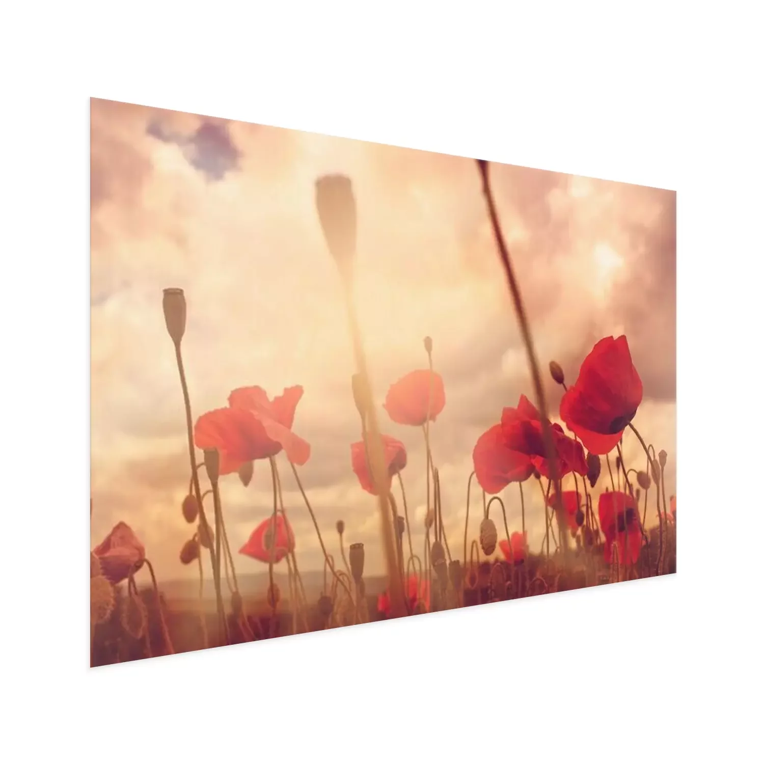 Poster: Mohnfeld unter bewölktem Himmel