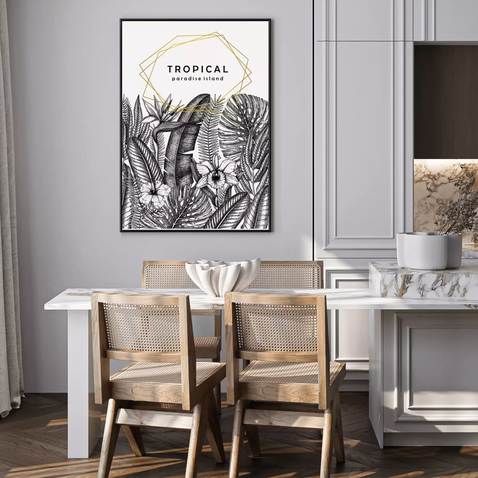 Poster: Monochromatische Blätter und Blumen