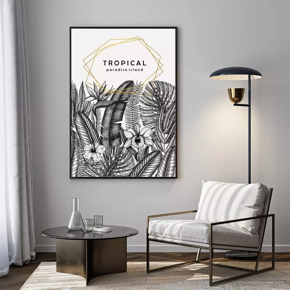 Poster Monochromatische Blätter und Blumen