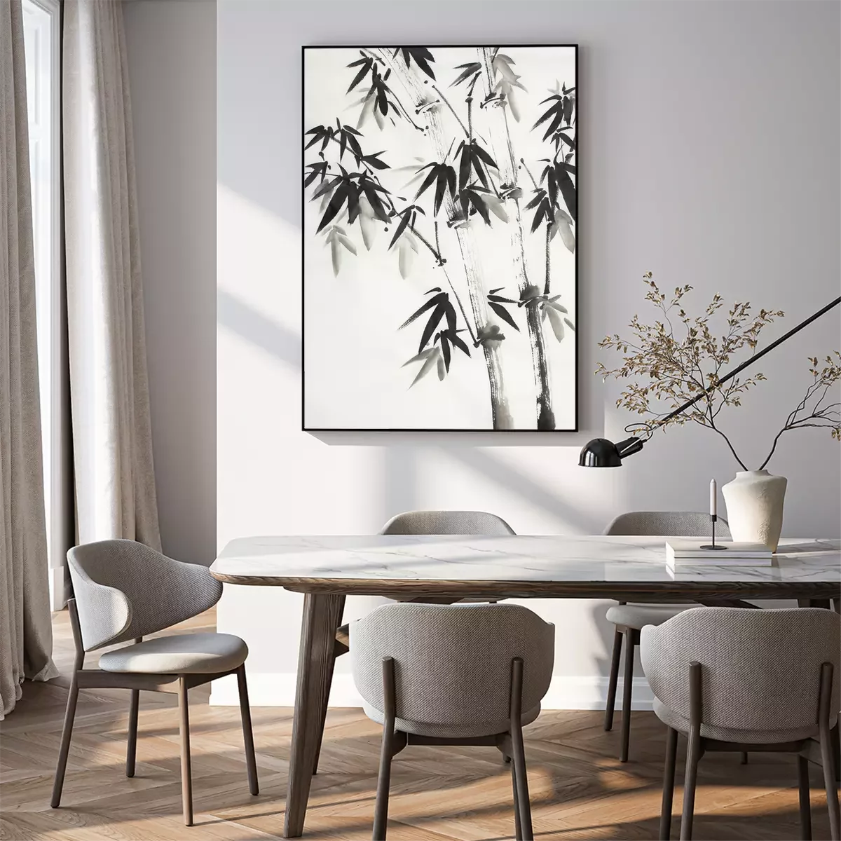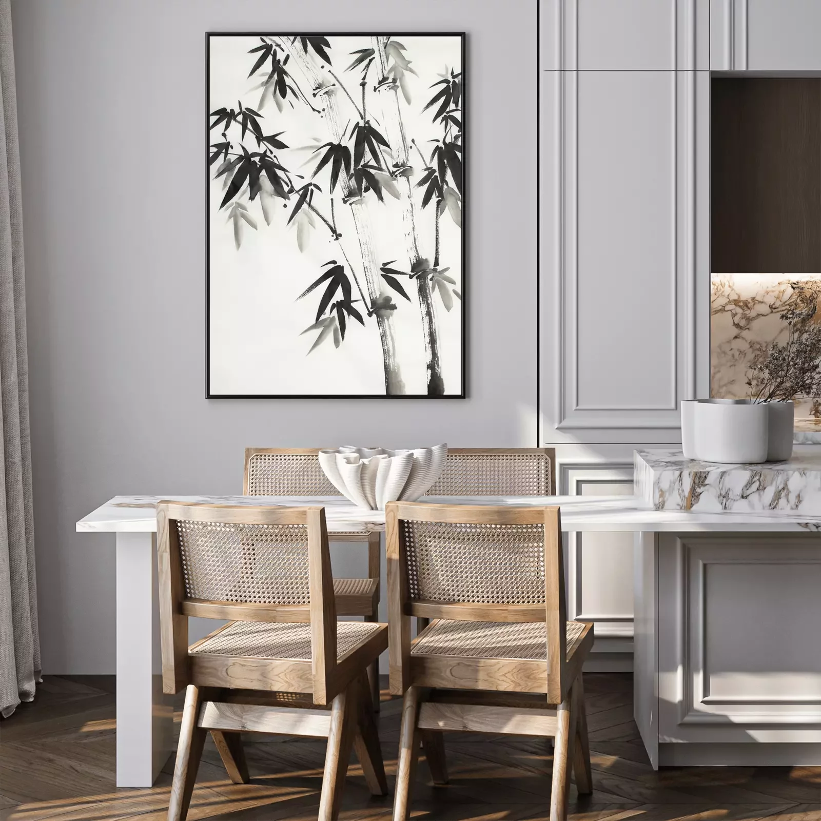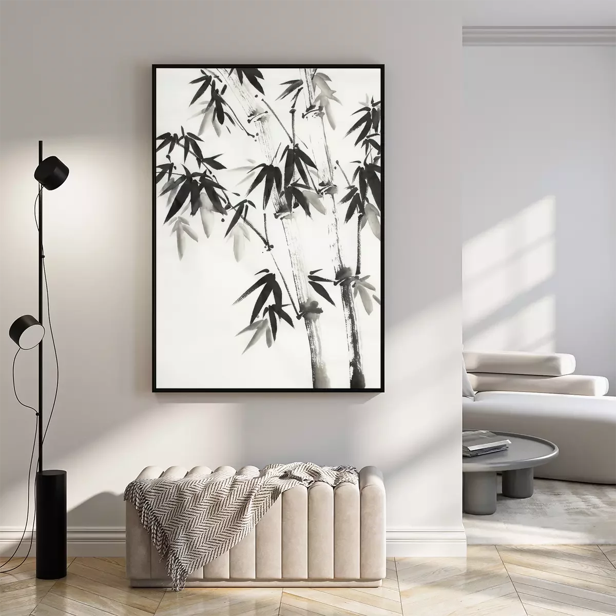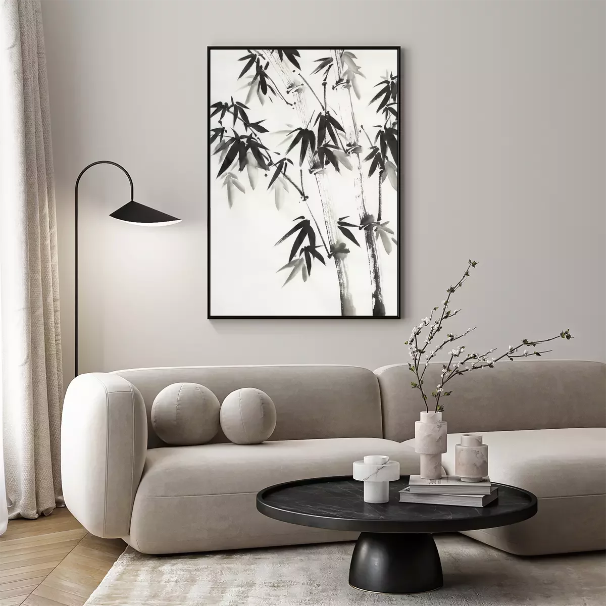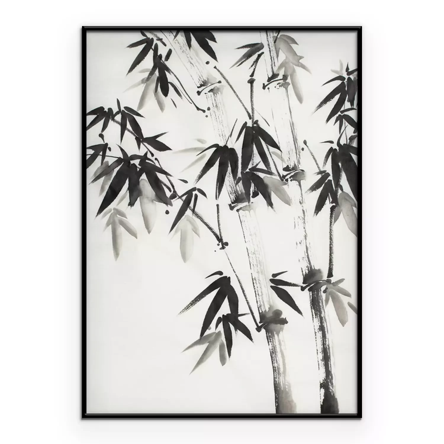 Poster: Monochromatischer Bambus mit gemalten Blättern