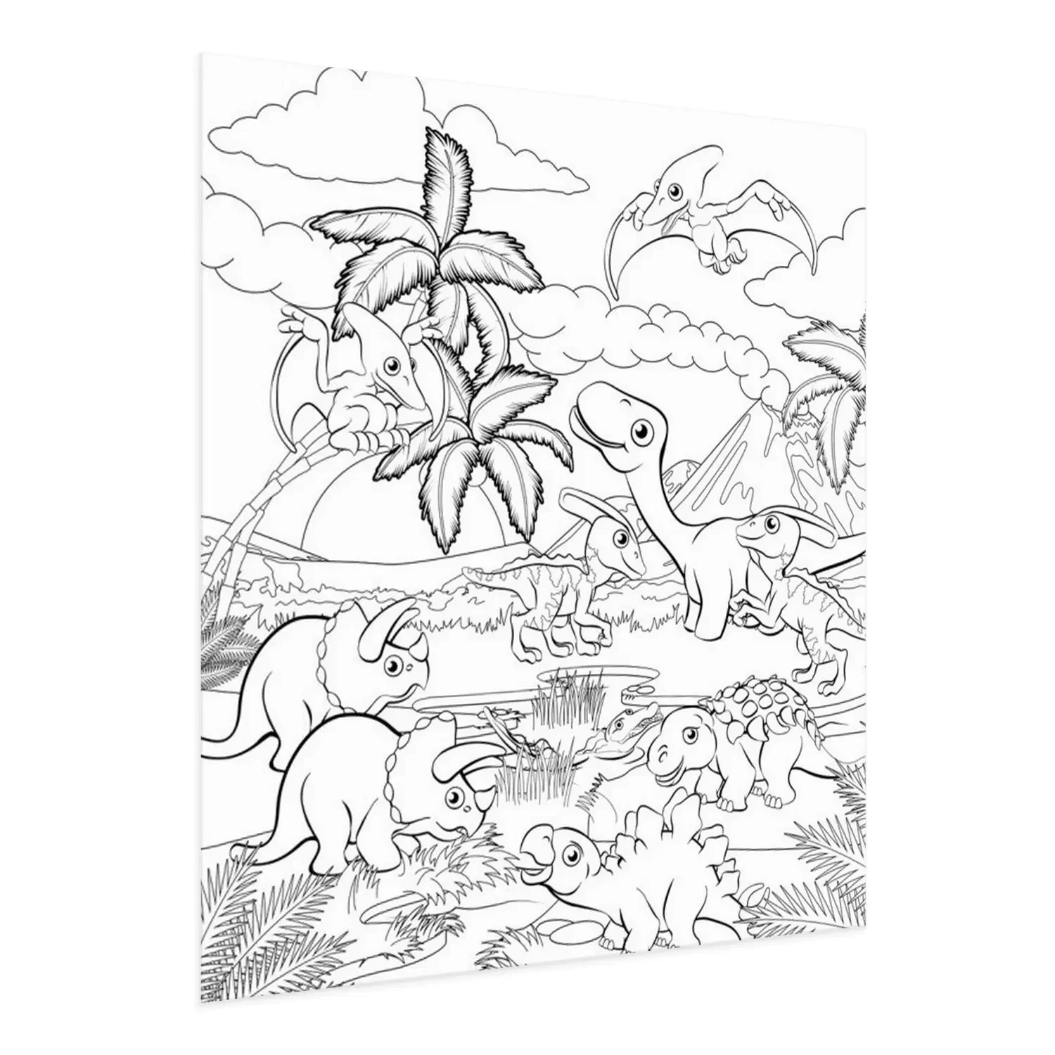 Poster Monochrome Grafik einer prähistorischen Landschaft mit Dinosauriern