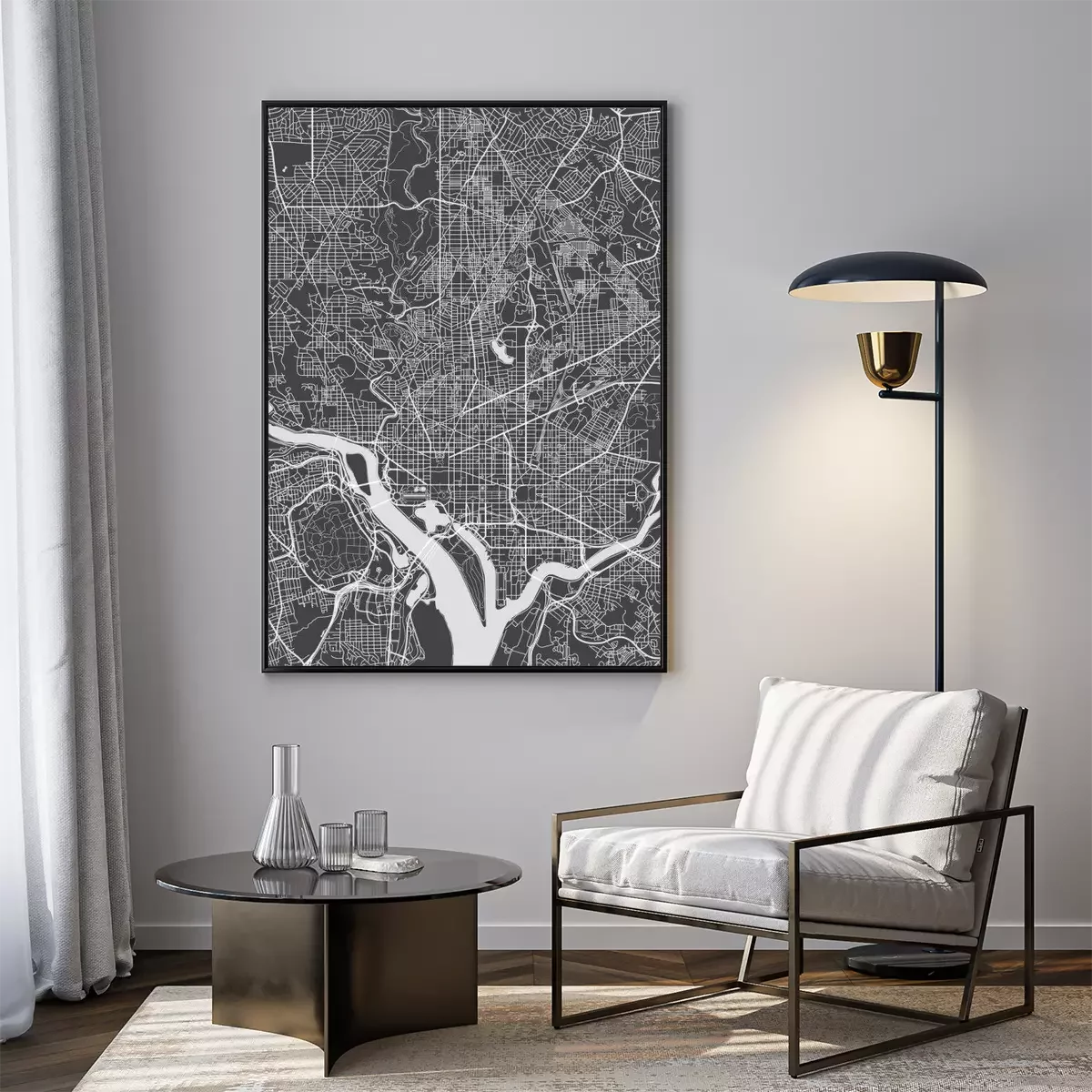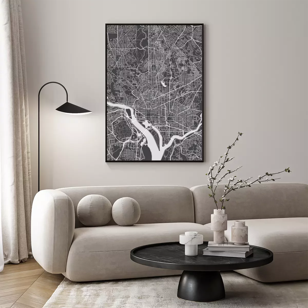 Poster: Monochrome Skizze des Stadtplans von Washington