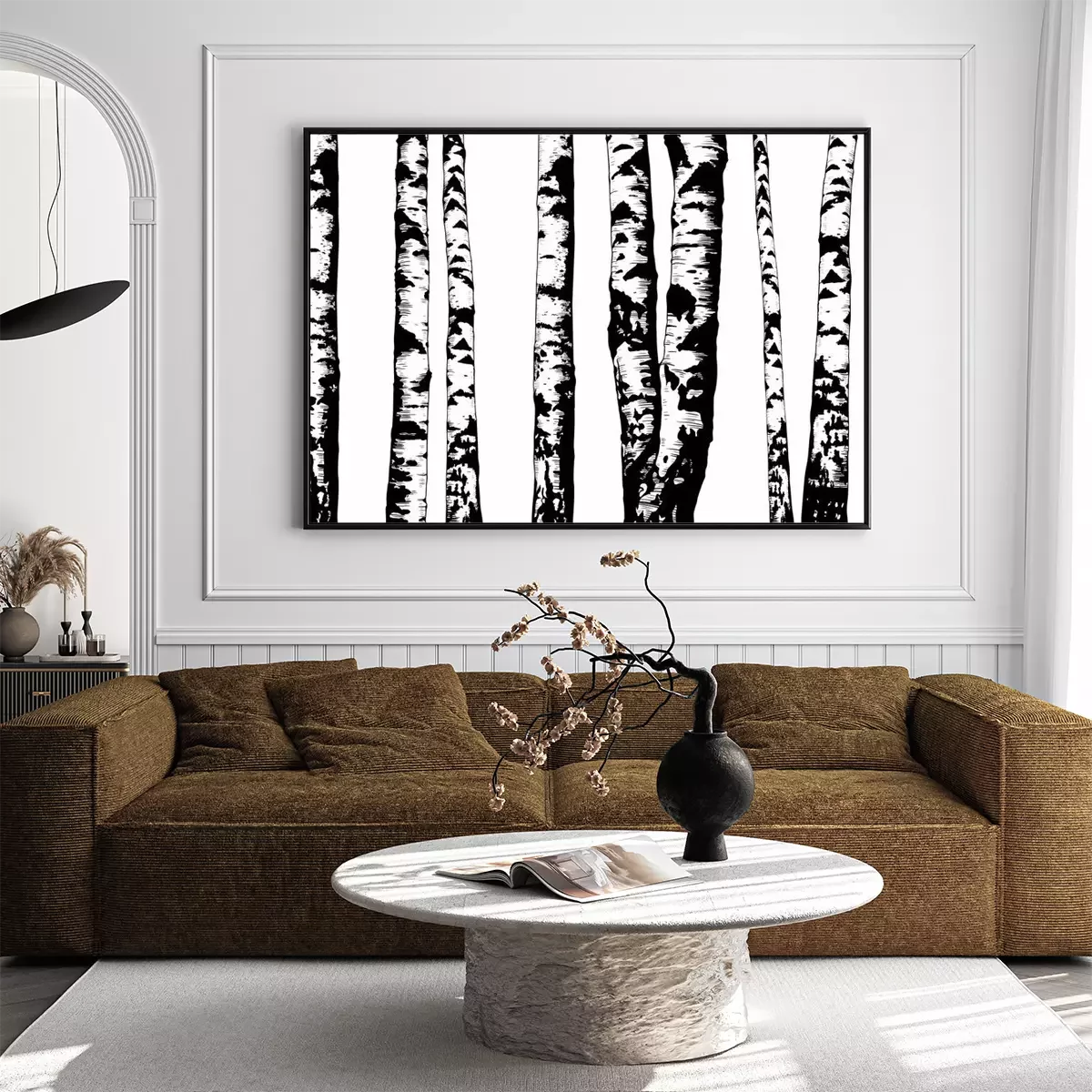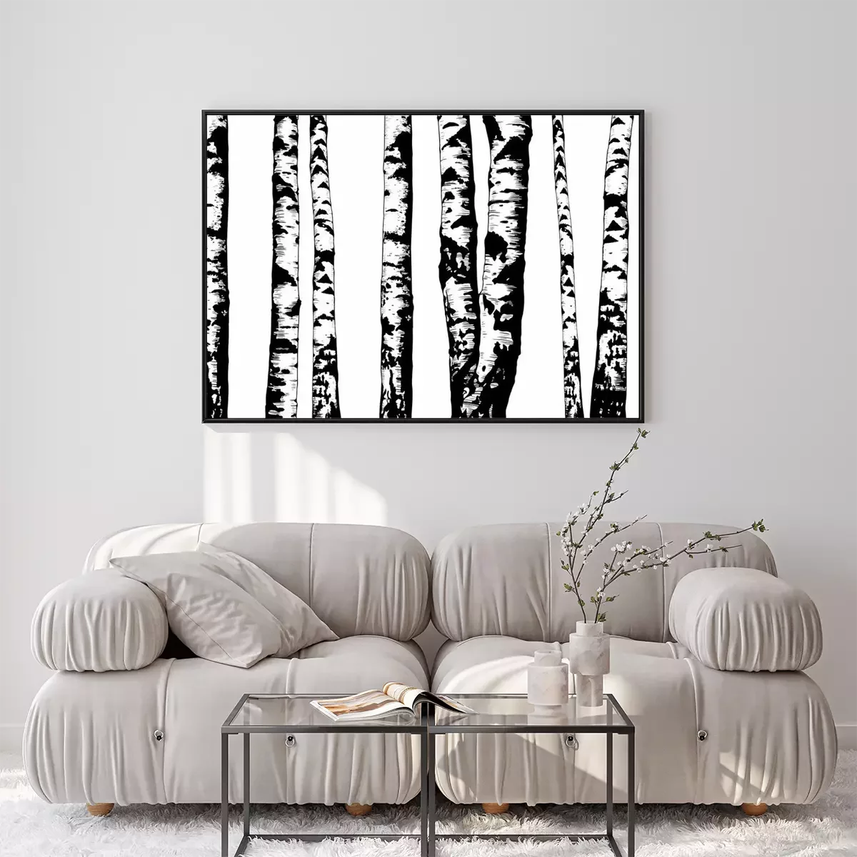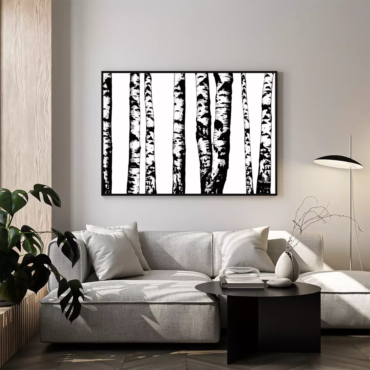 Poster: Monochrome Stämme in einem Birkenwald