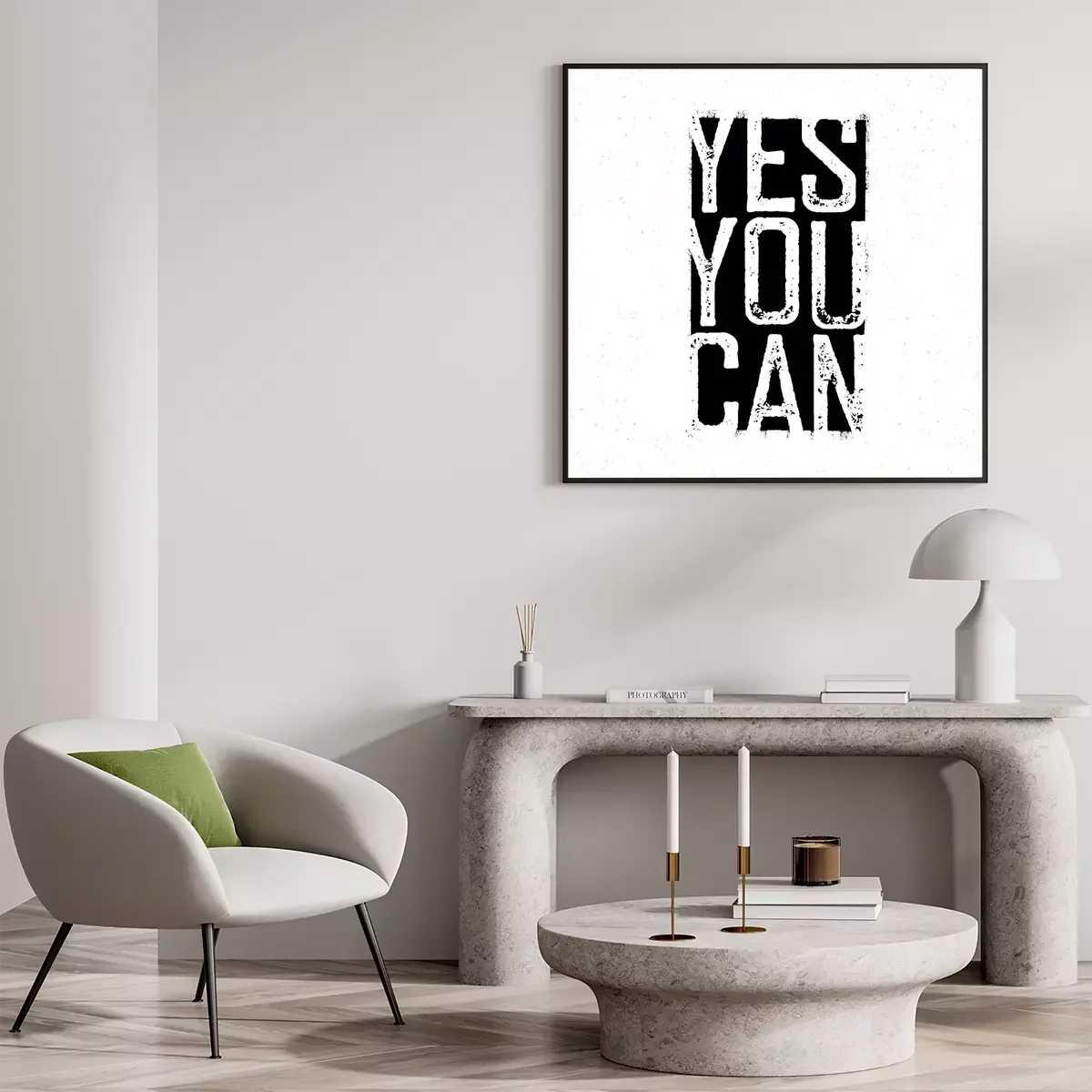 Poster: Monochromer motivierender Schriftzug in Schwarz und Weiß
