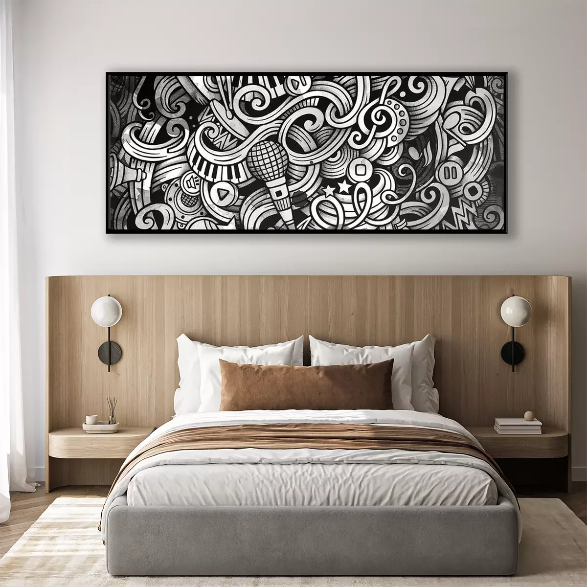 Poster: Monochromes Muster mit Musikinstrumenten