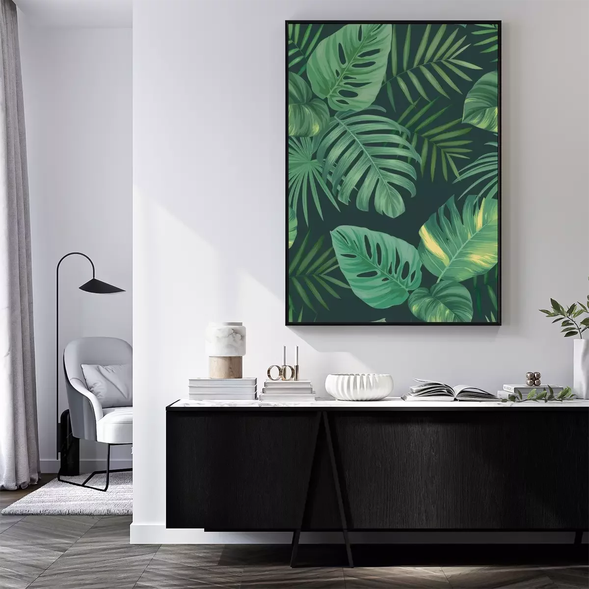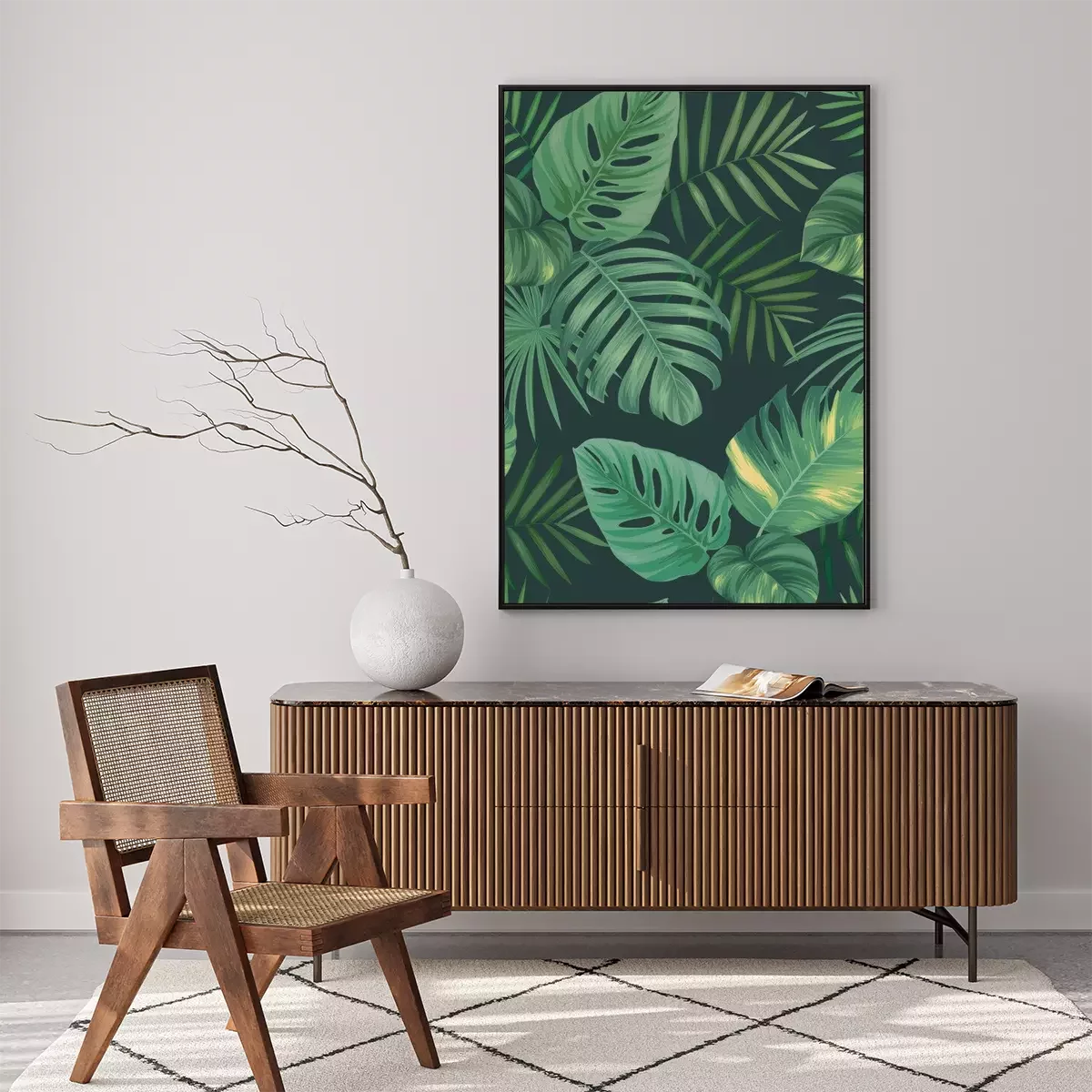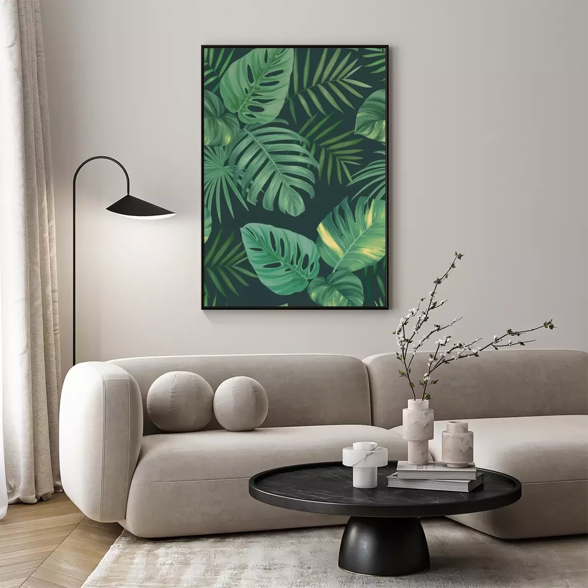 Poster: Monstera-Blätter mit gelben Verfärbungen