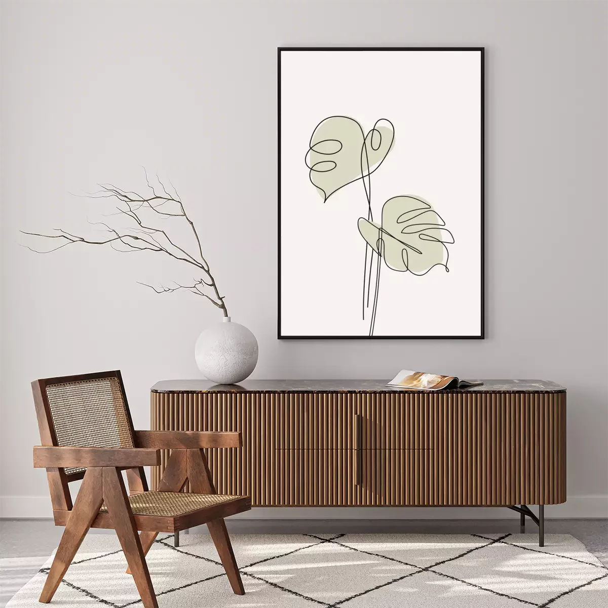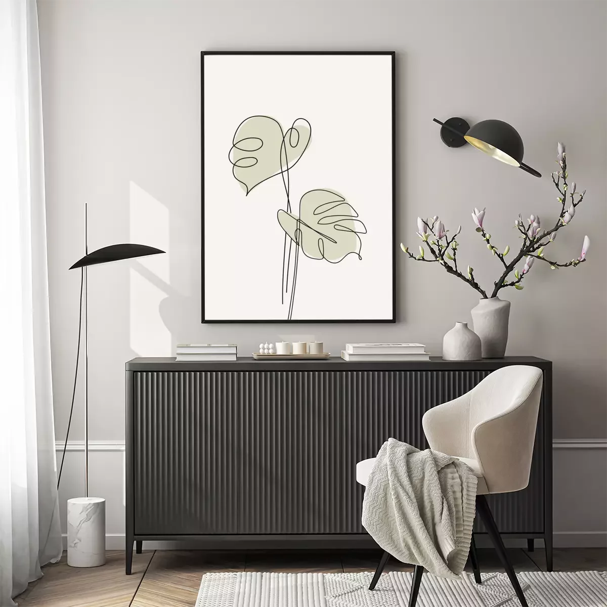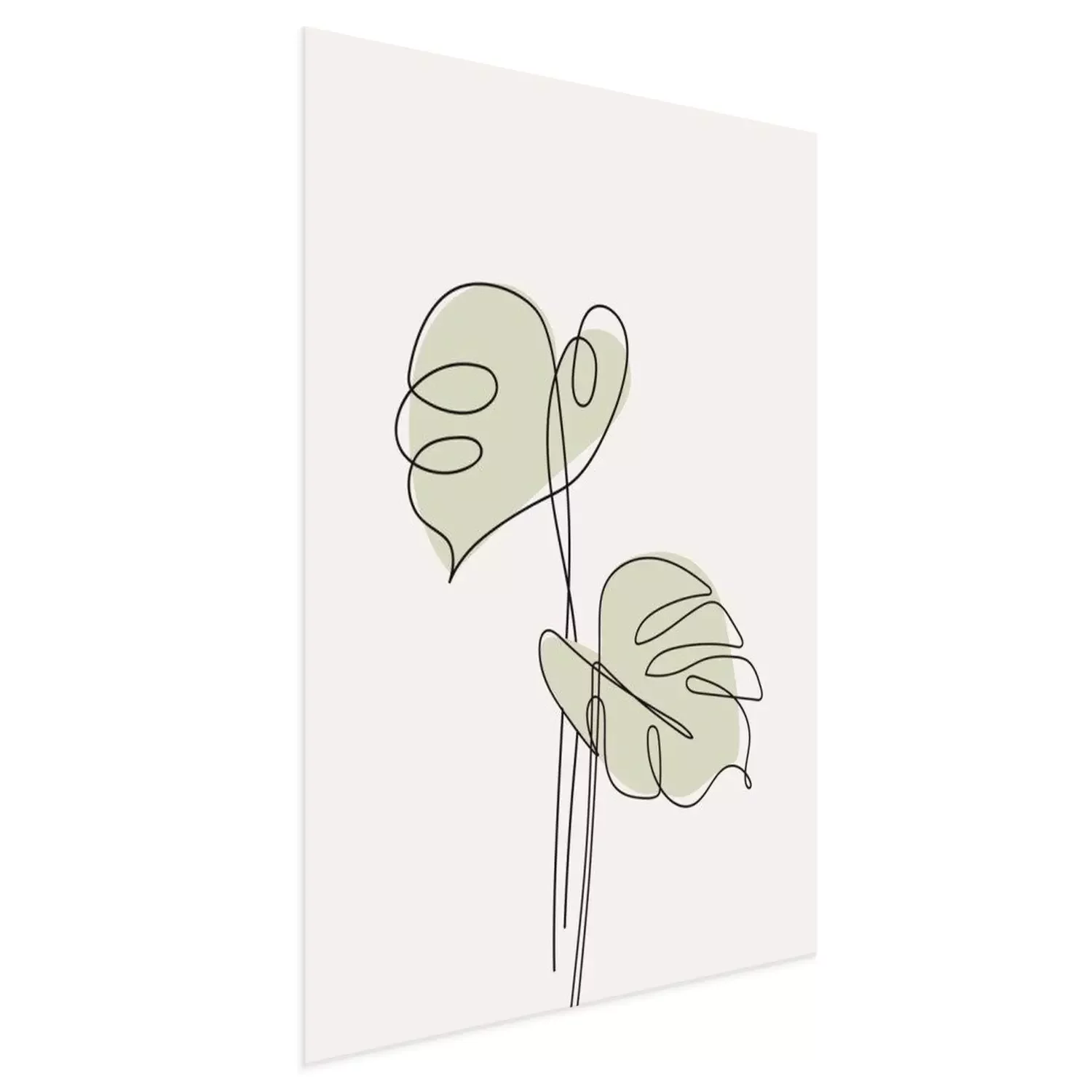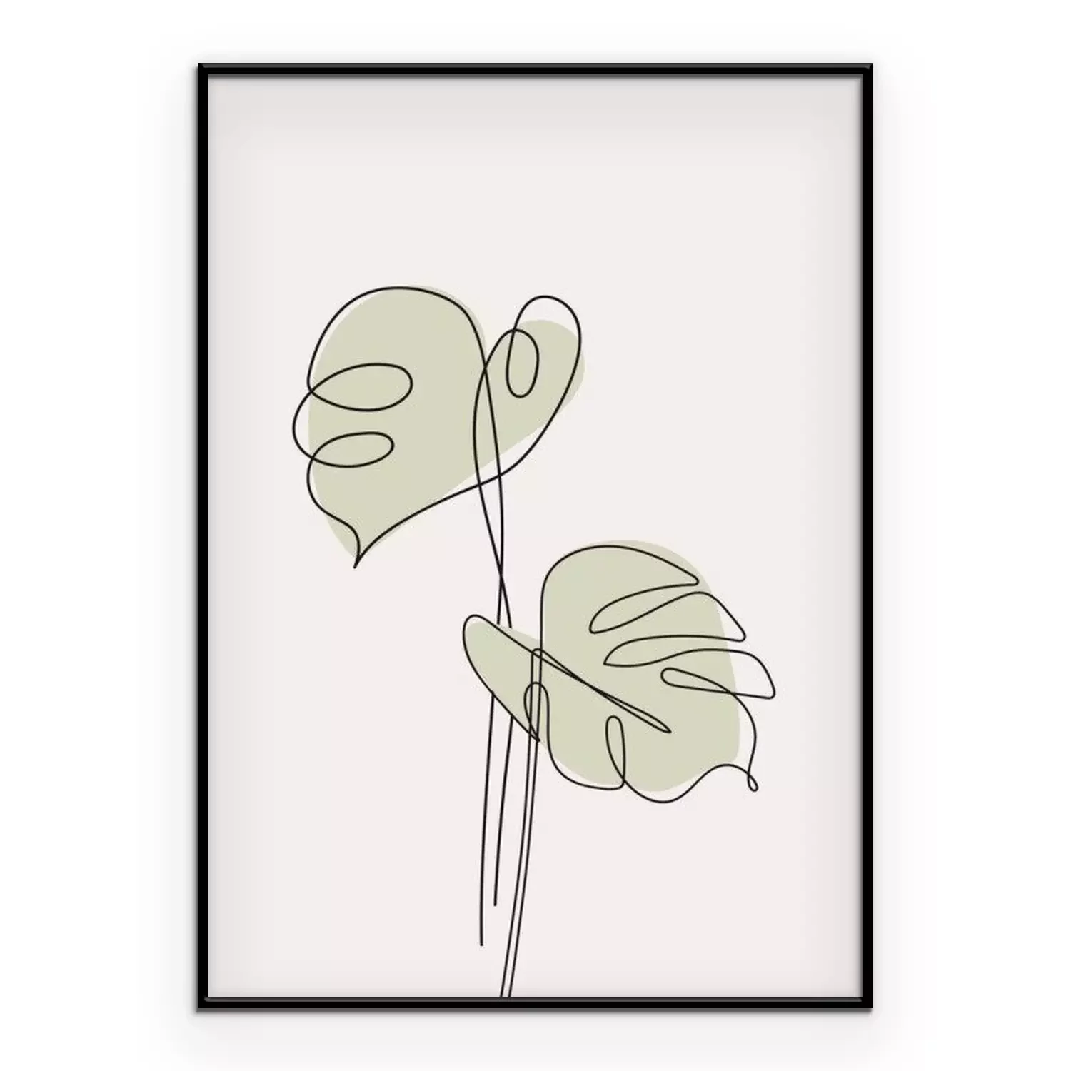 Poster: Monstera-Blätter Skizze mit Grün gefüllt