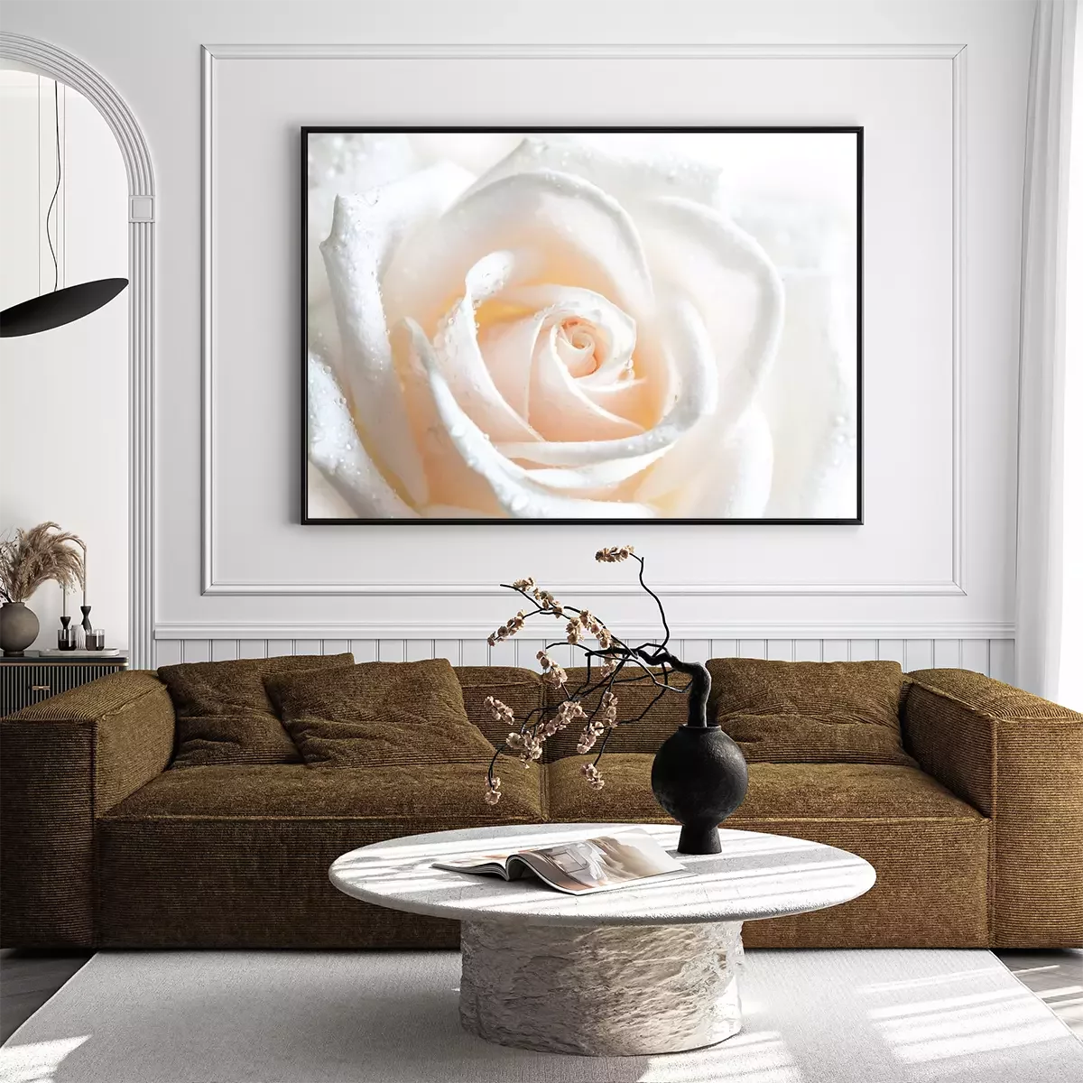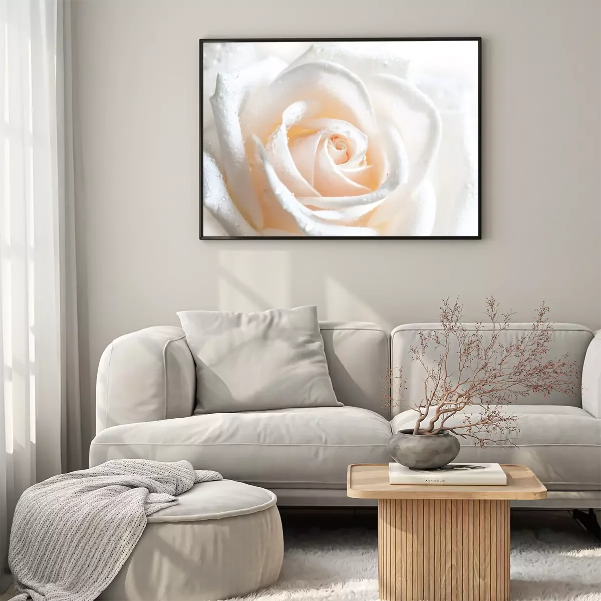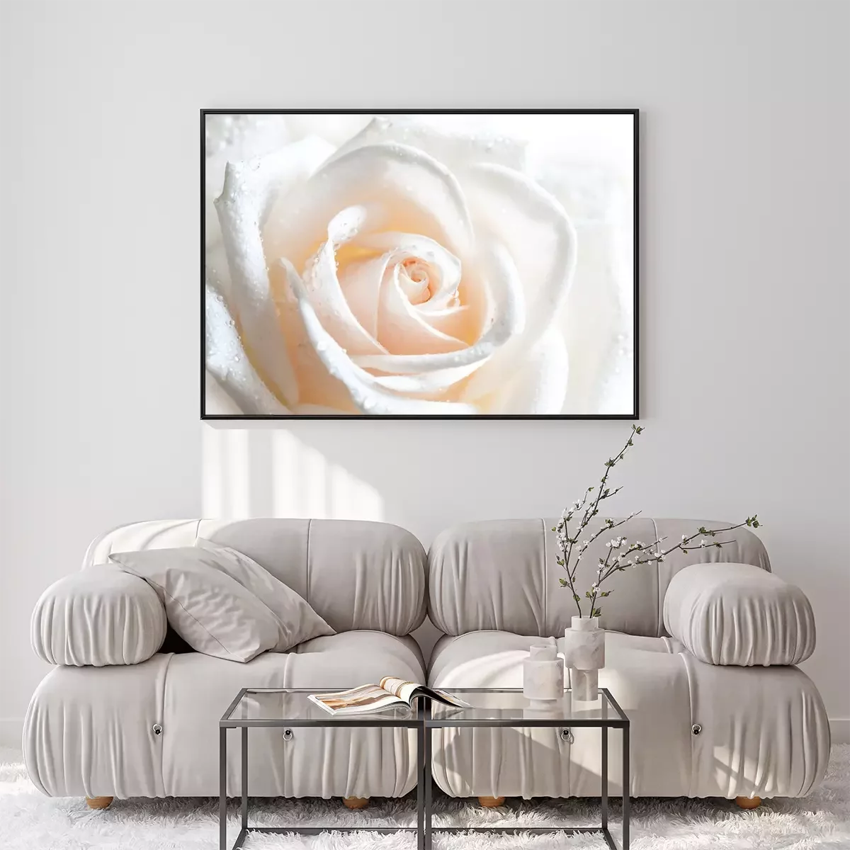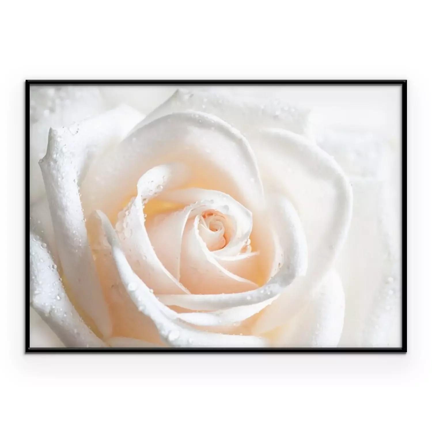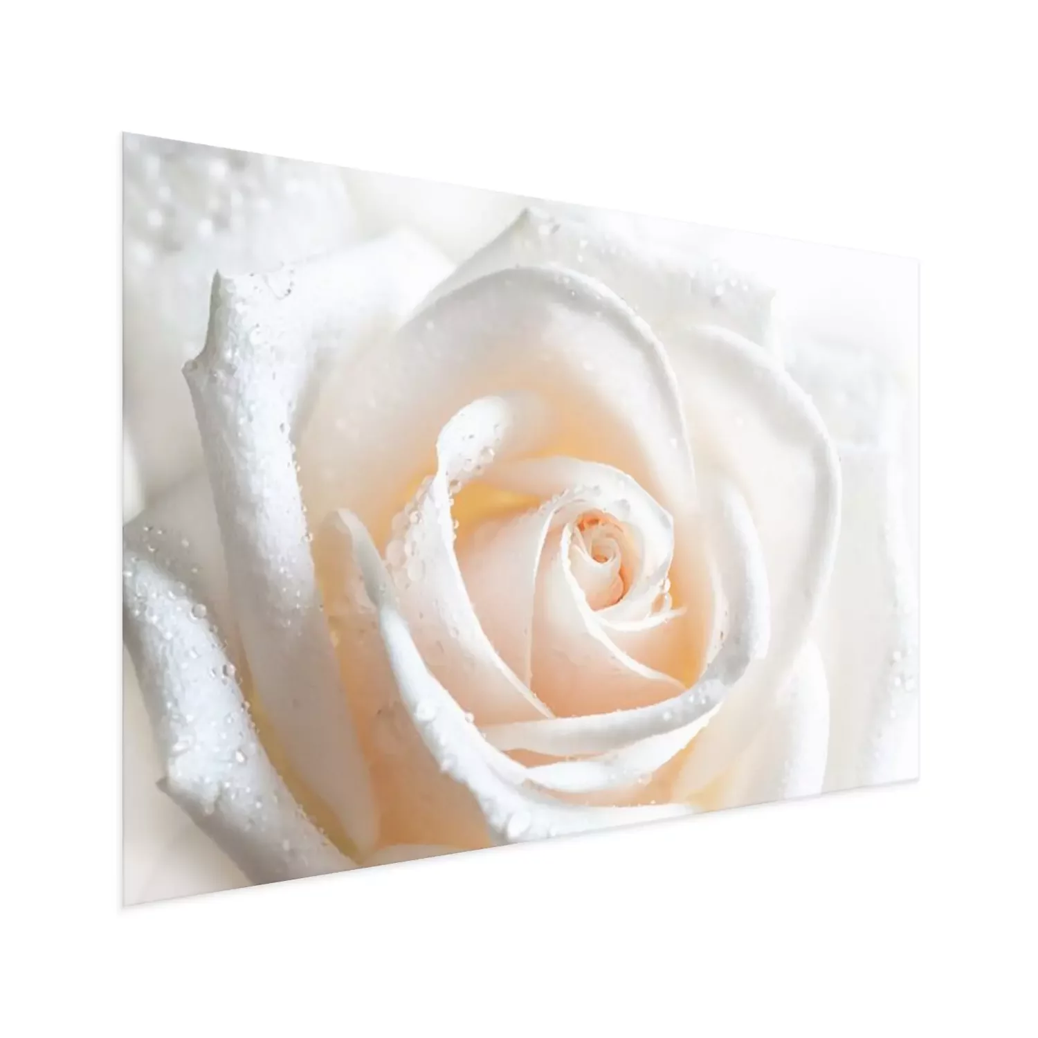 Poster: Morgenrosen weiße Blütenblätter mit Tautropfen
