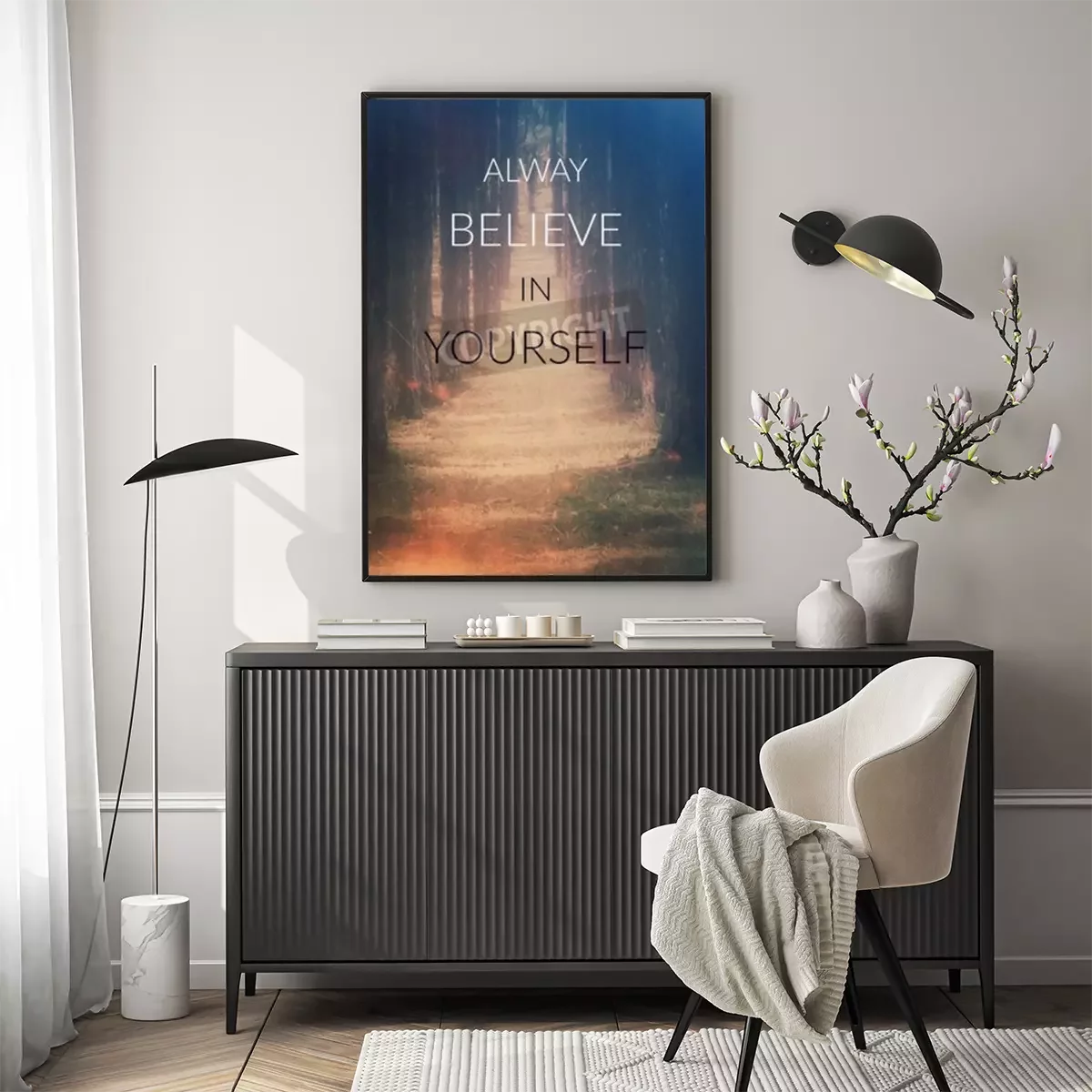 Poster Motivierendes Zitat auf einem Hintergrund von Natur