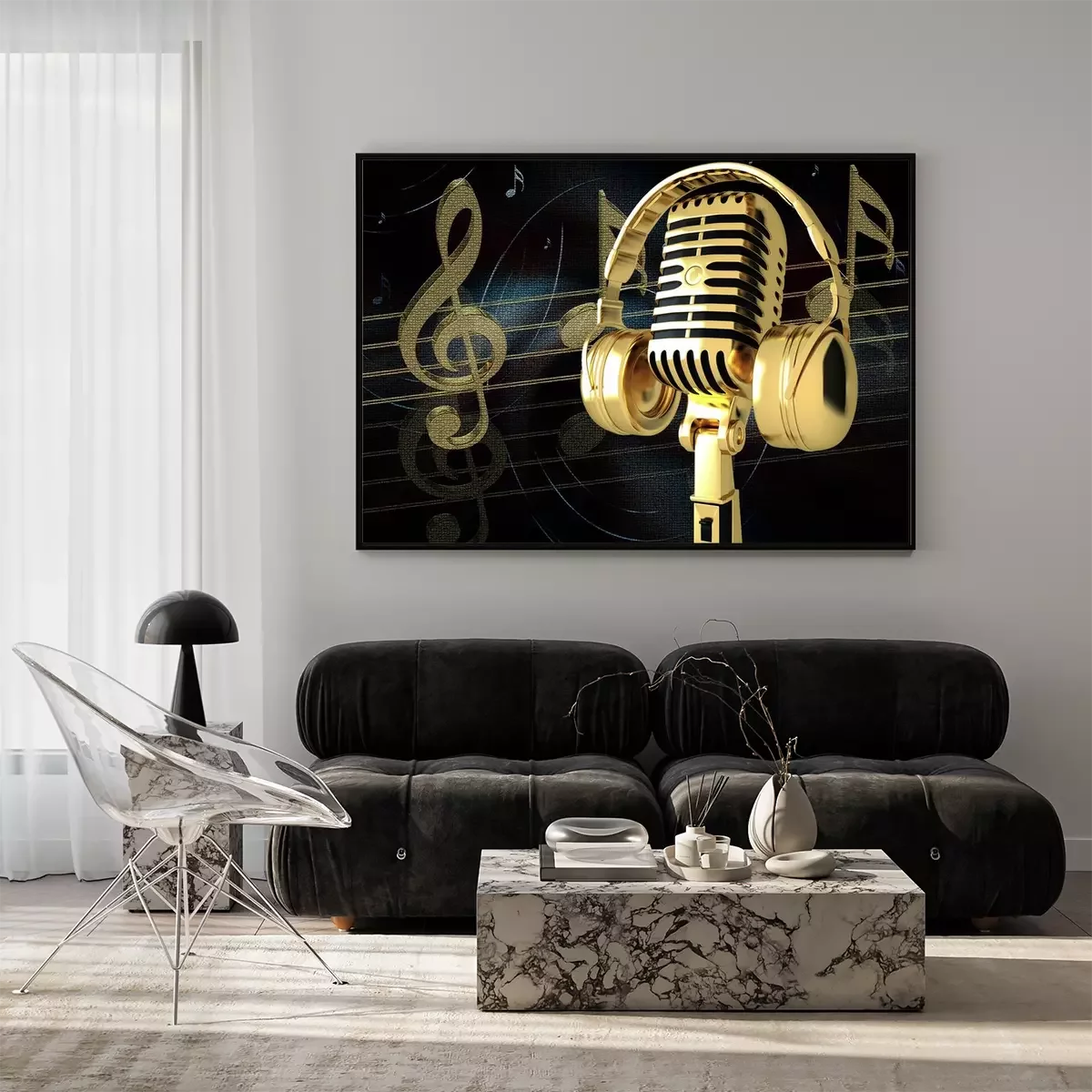 Poster: Musik mit Noten und einem Mikrofon