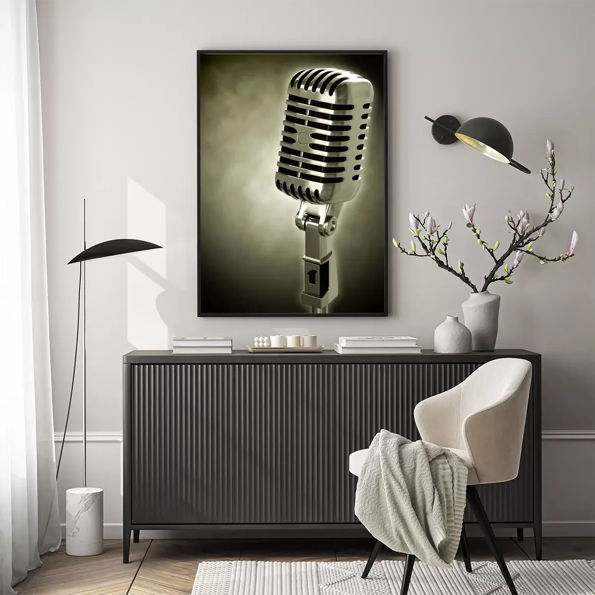 Poster Musik und ein graues Mikrofon