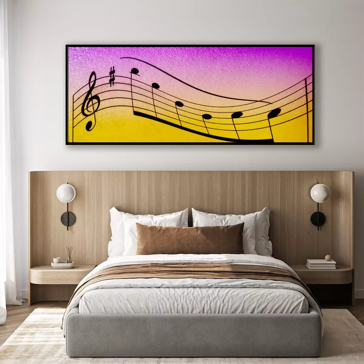 Poster: Musiknoten auf zweifarbigem Hintergrund