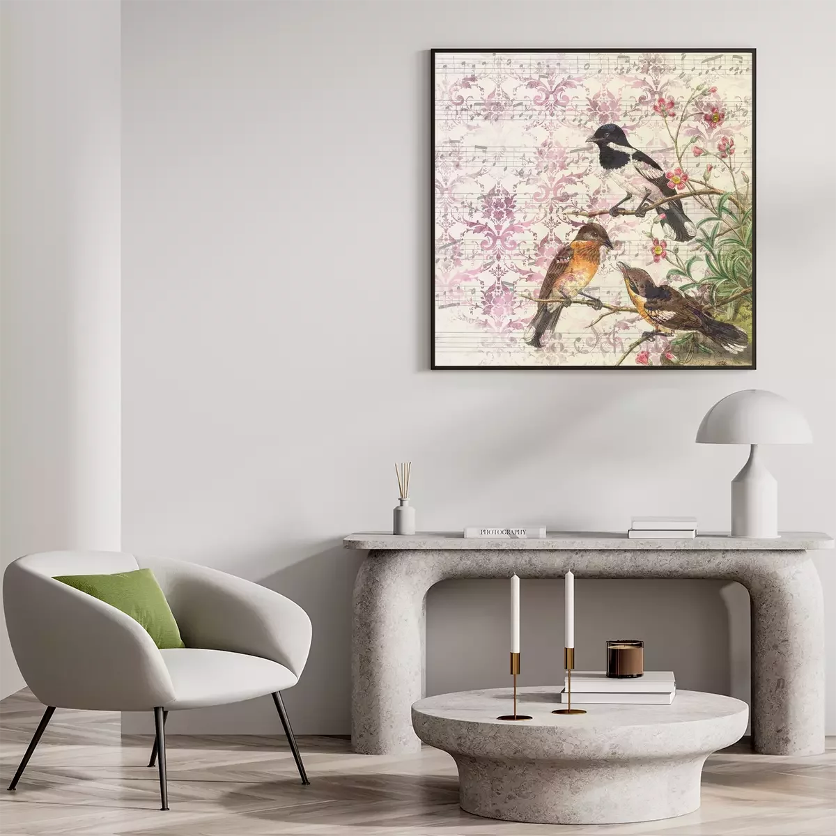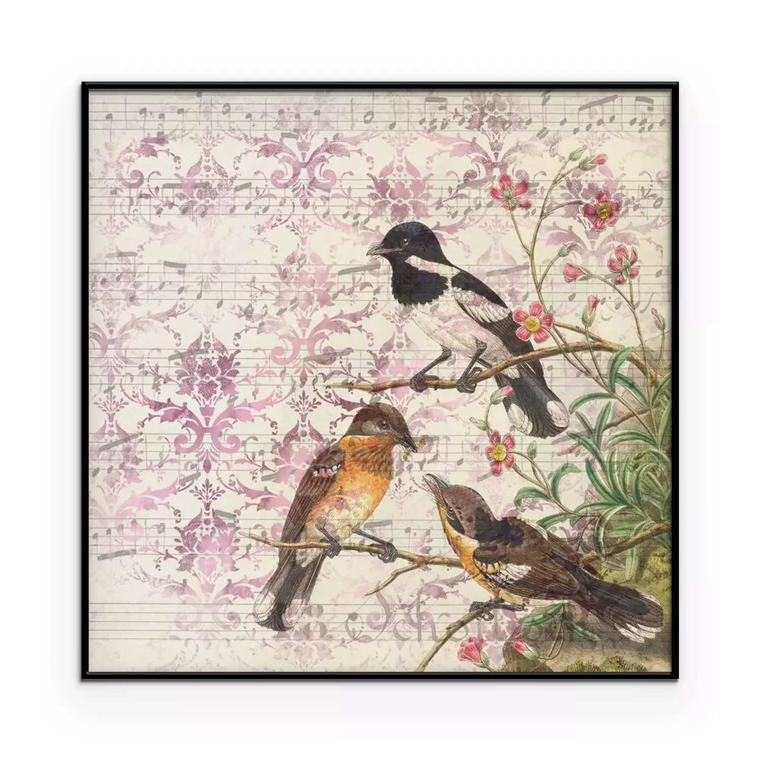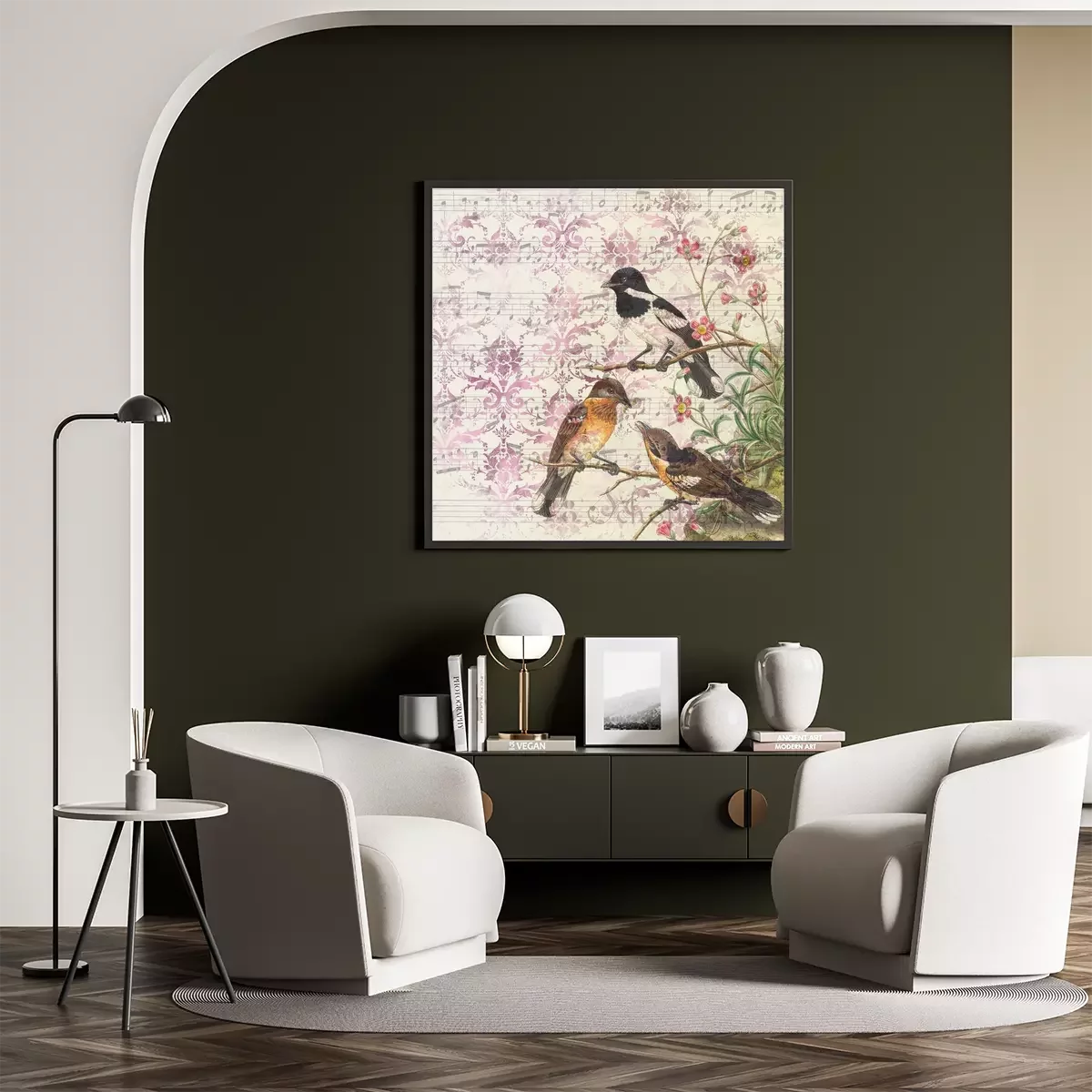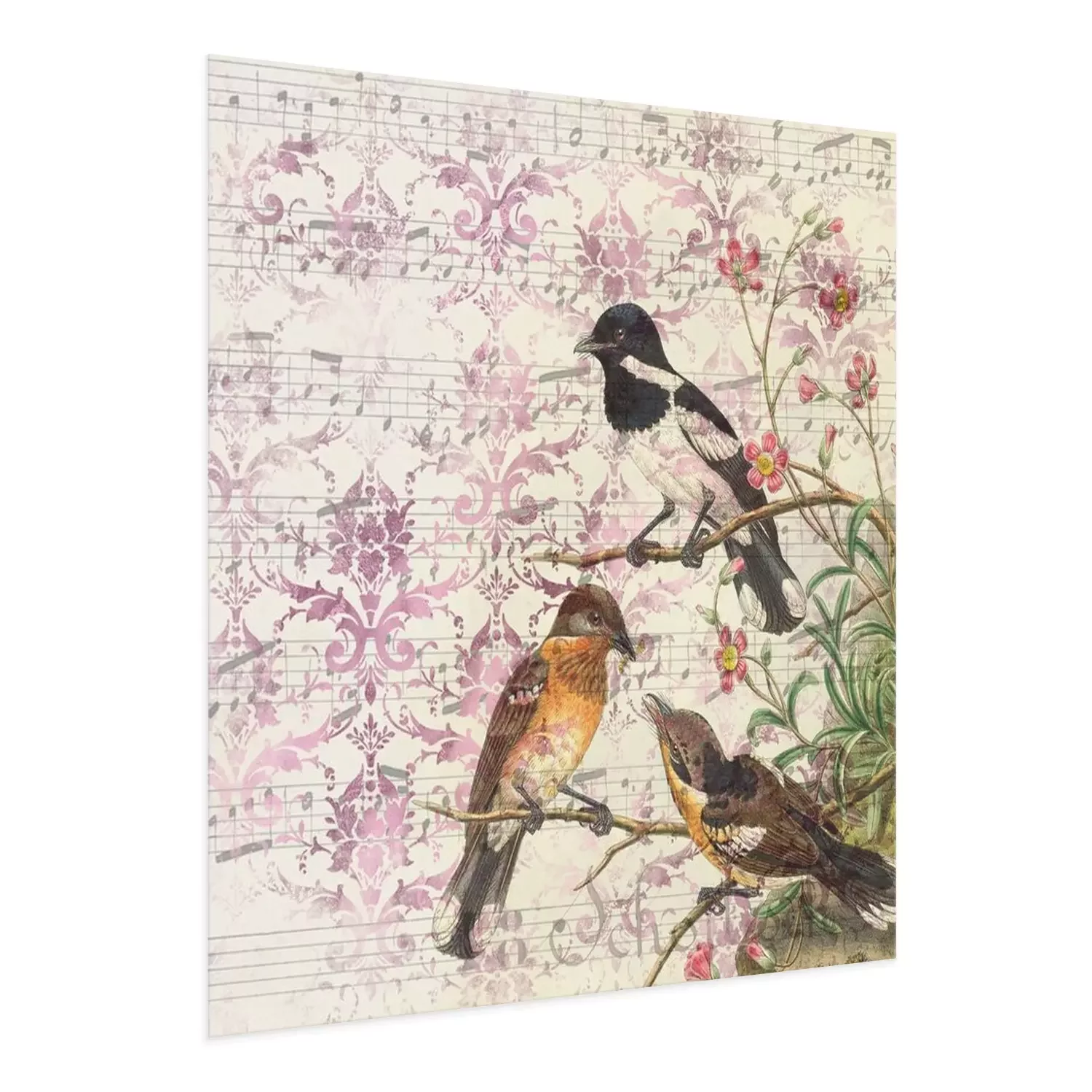 Poster: Musiknoten und Vögel Collage Vintage Retro