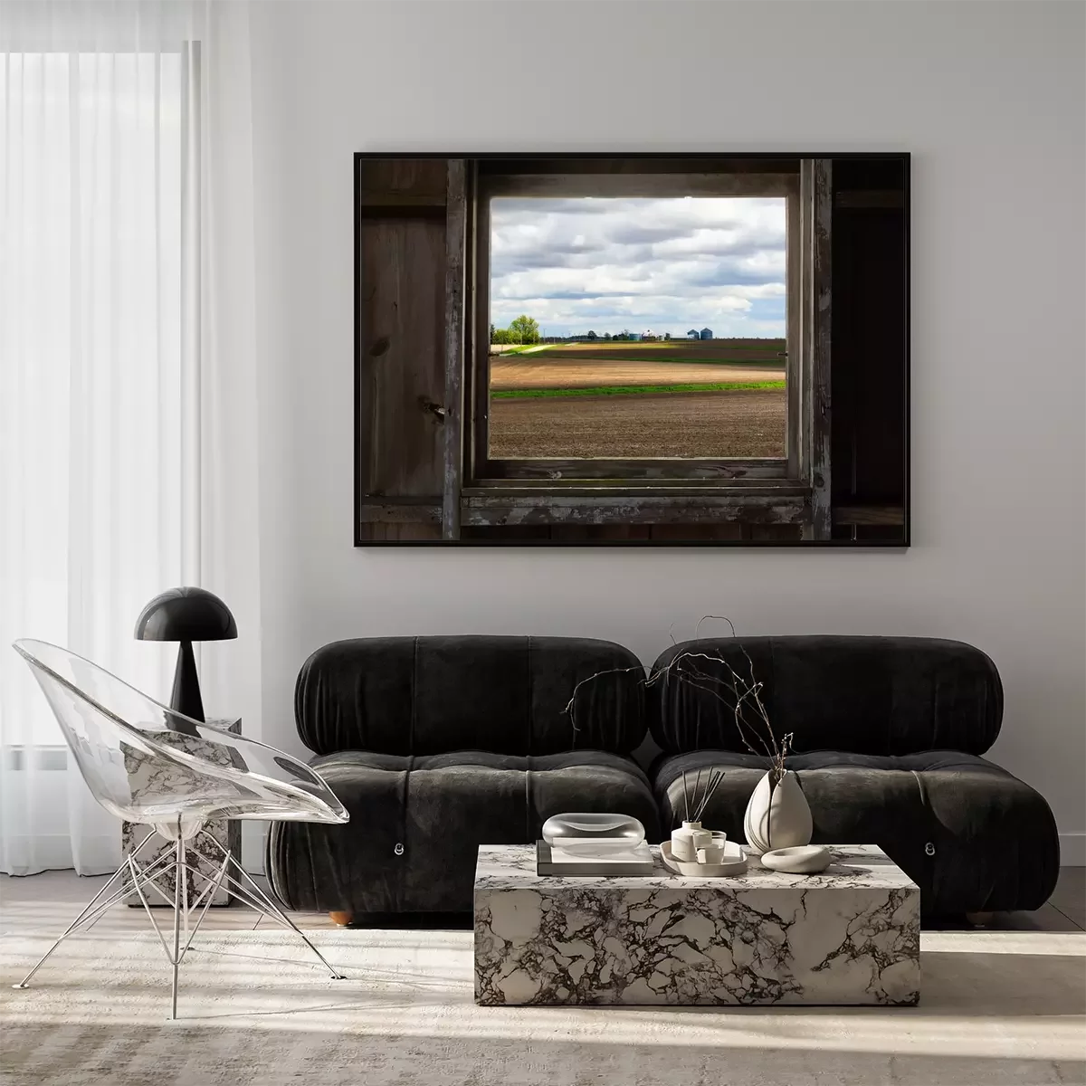 Poster: Muster im rustikalen Stil, das ein Fenster imitiert