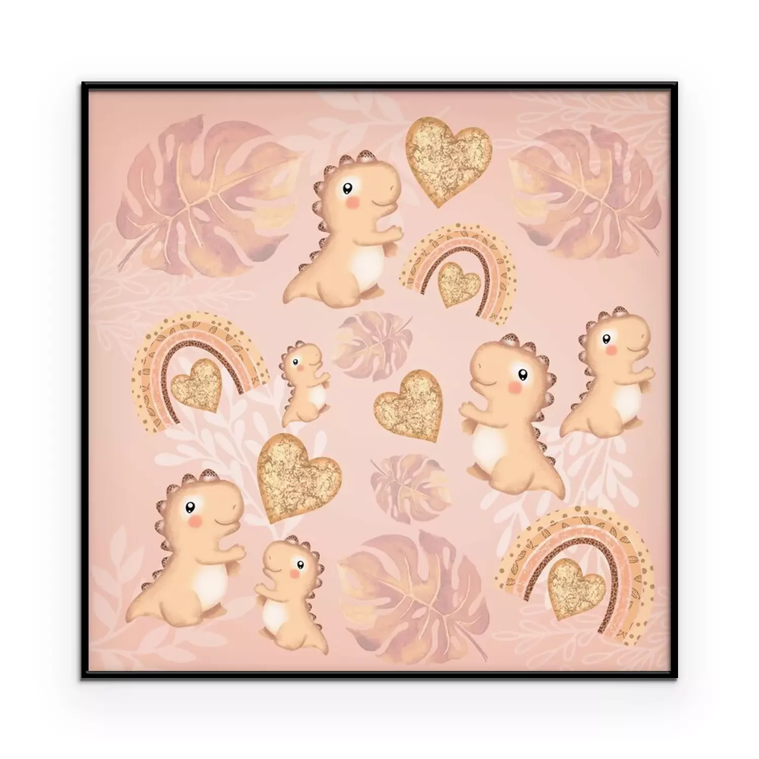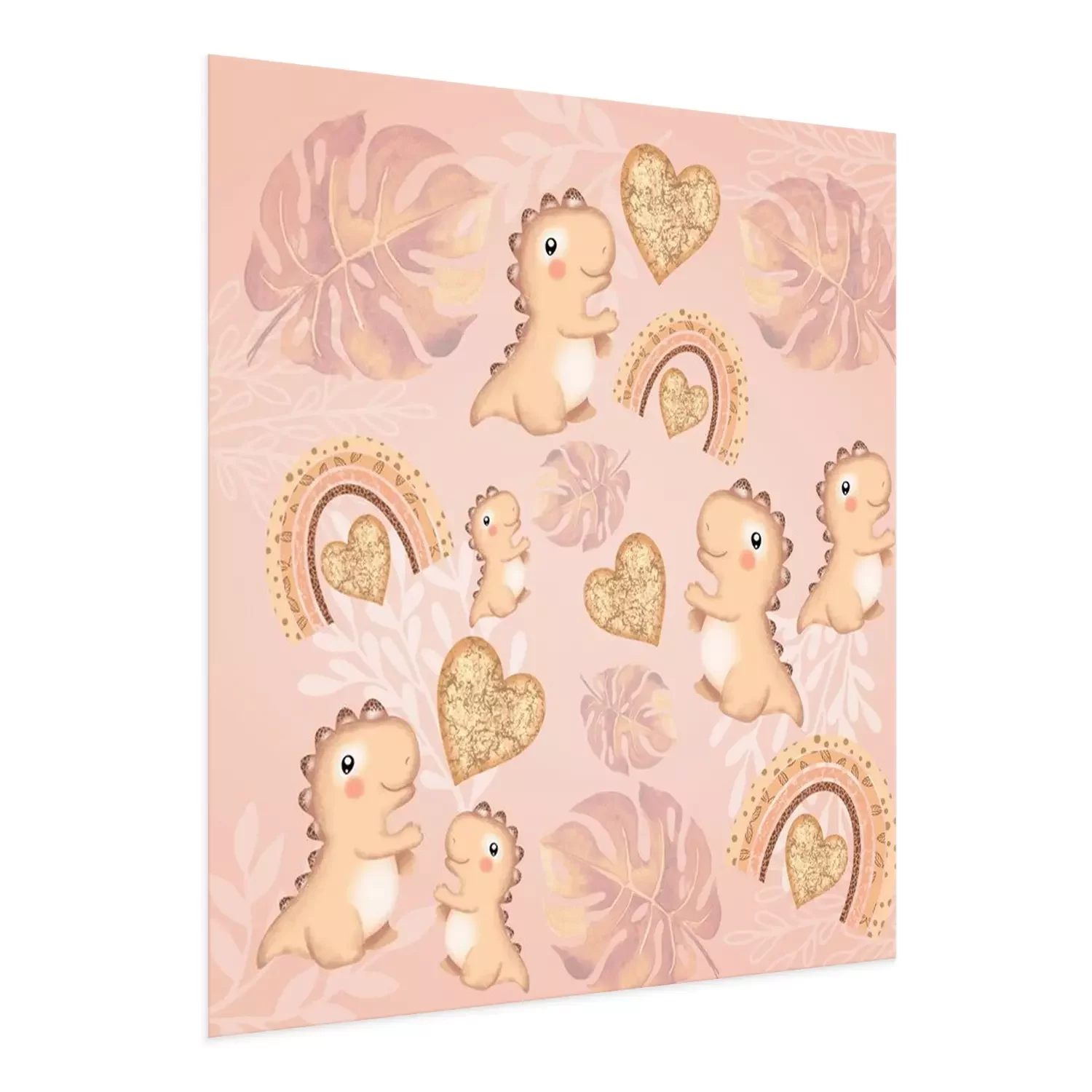 Poster: Muster mit Dinosauriern inmitten von tropischen Blättern