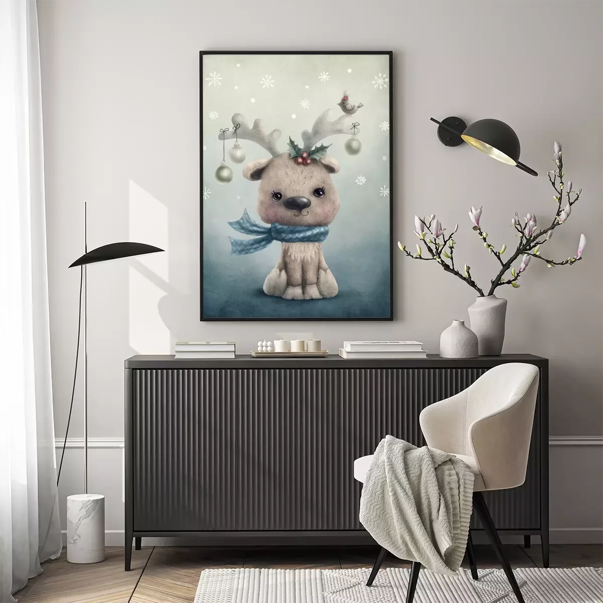 Poster: Muster mit Rentier auf Aquarell-Hintergrund