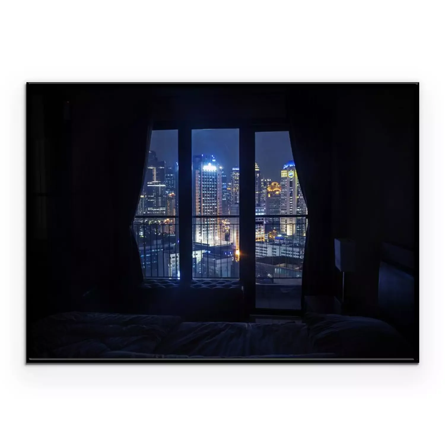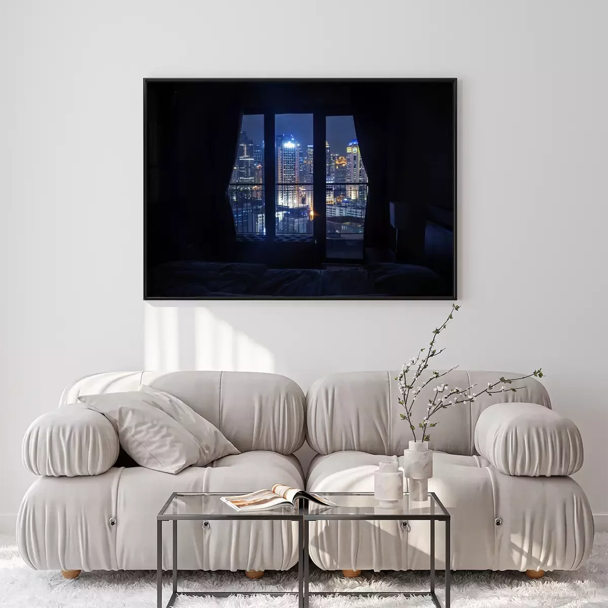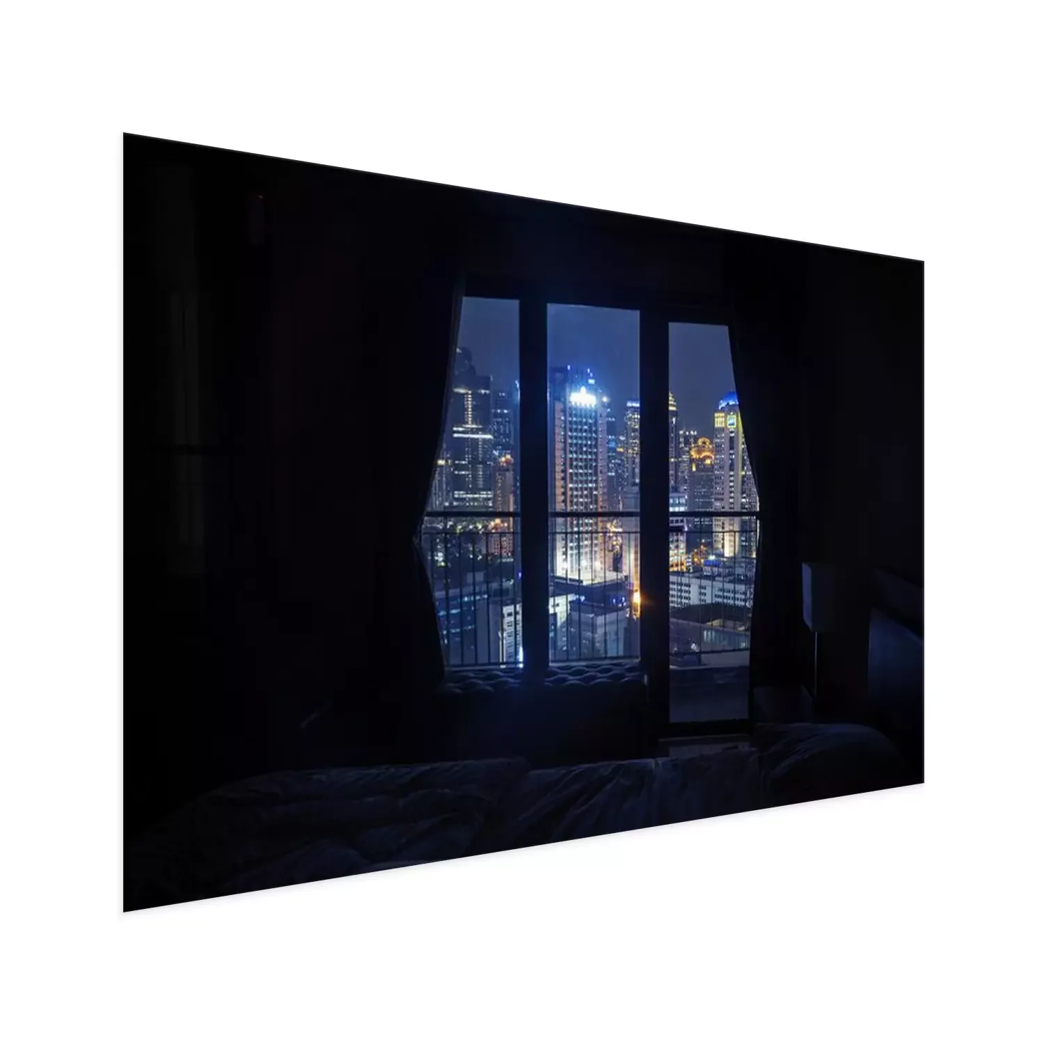 Poster: Nachtansicht der Stadt vom Fenster aus