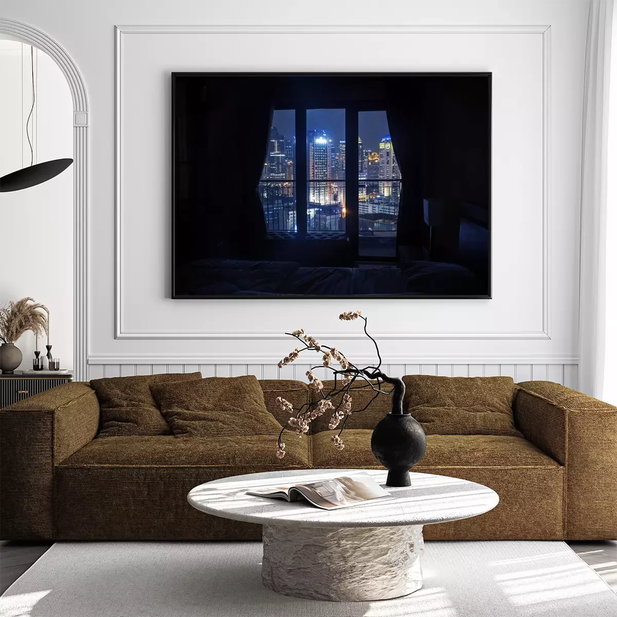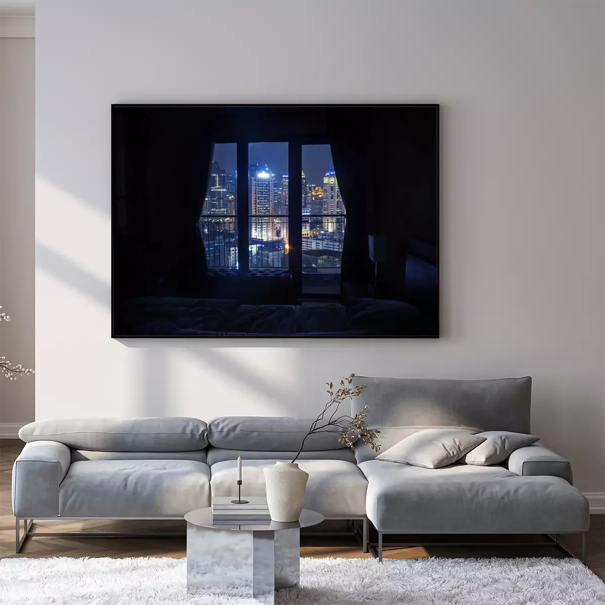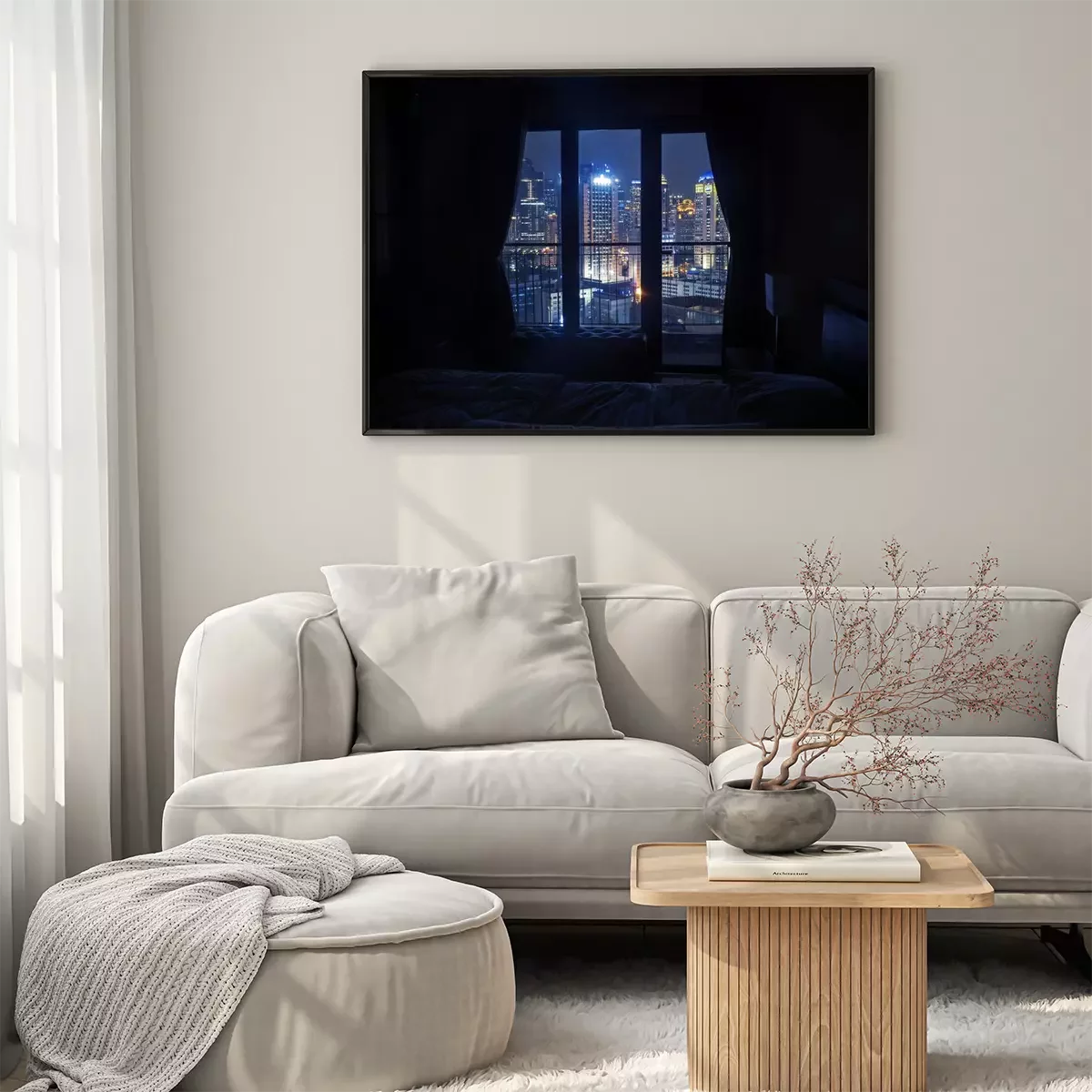 Poster: Nachtansicht der Stadt vom Fenster aus