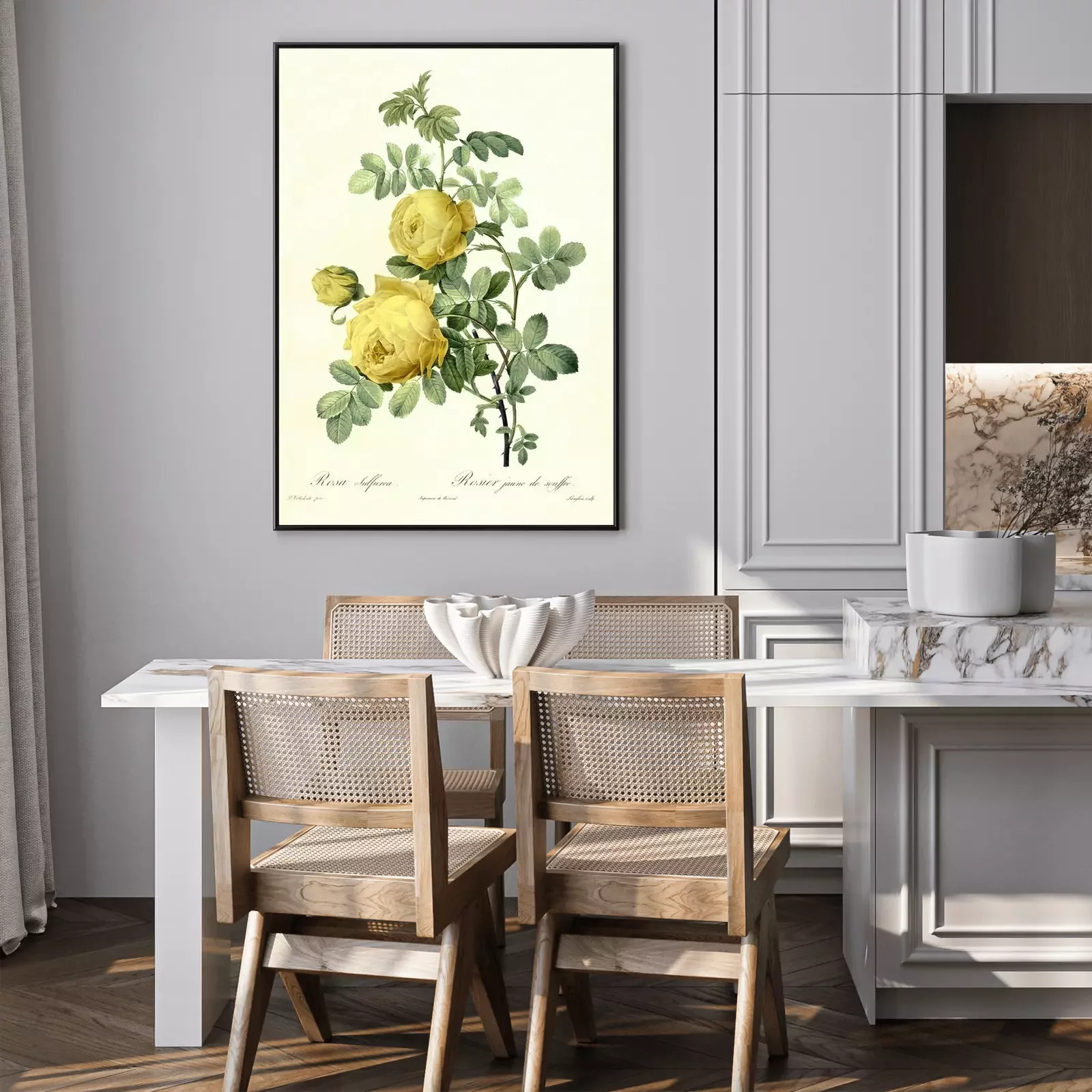 Botanische Grafik der weißen Rose mit Beschreibungen