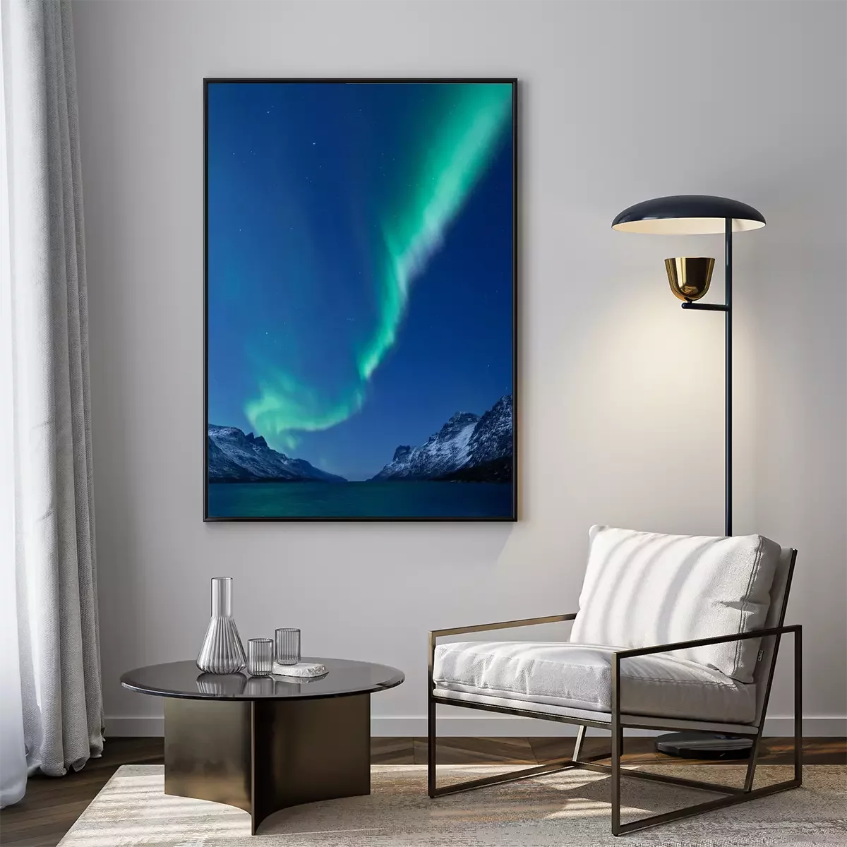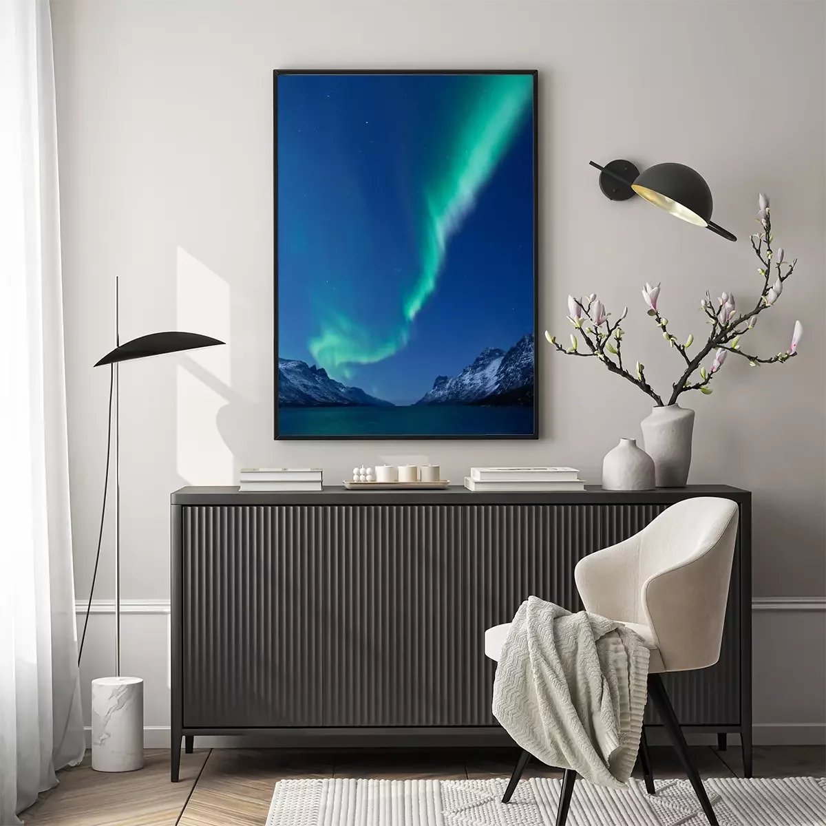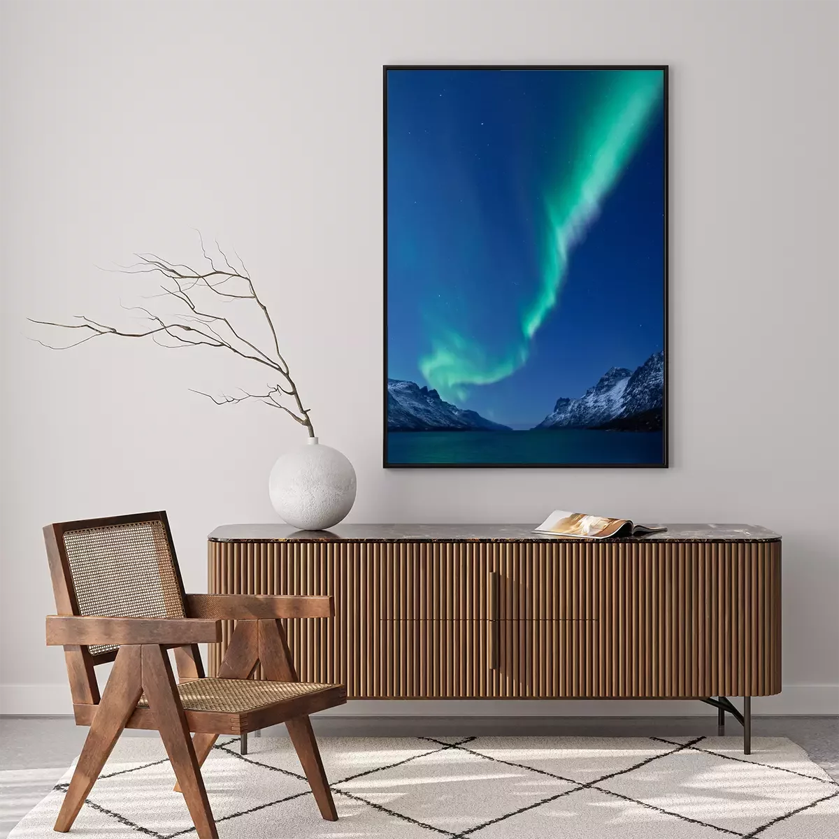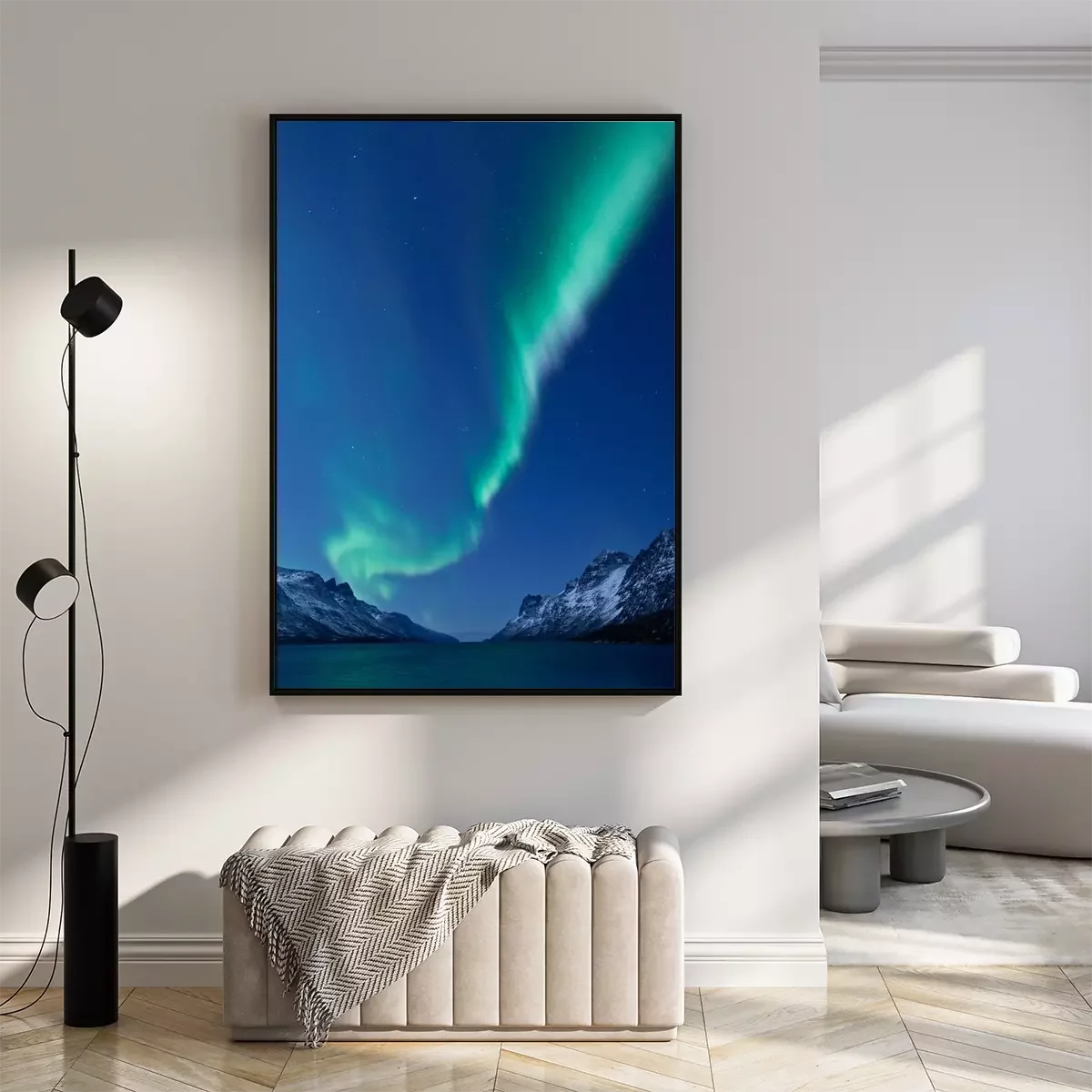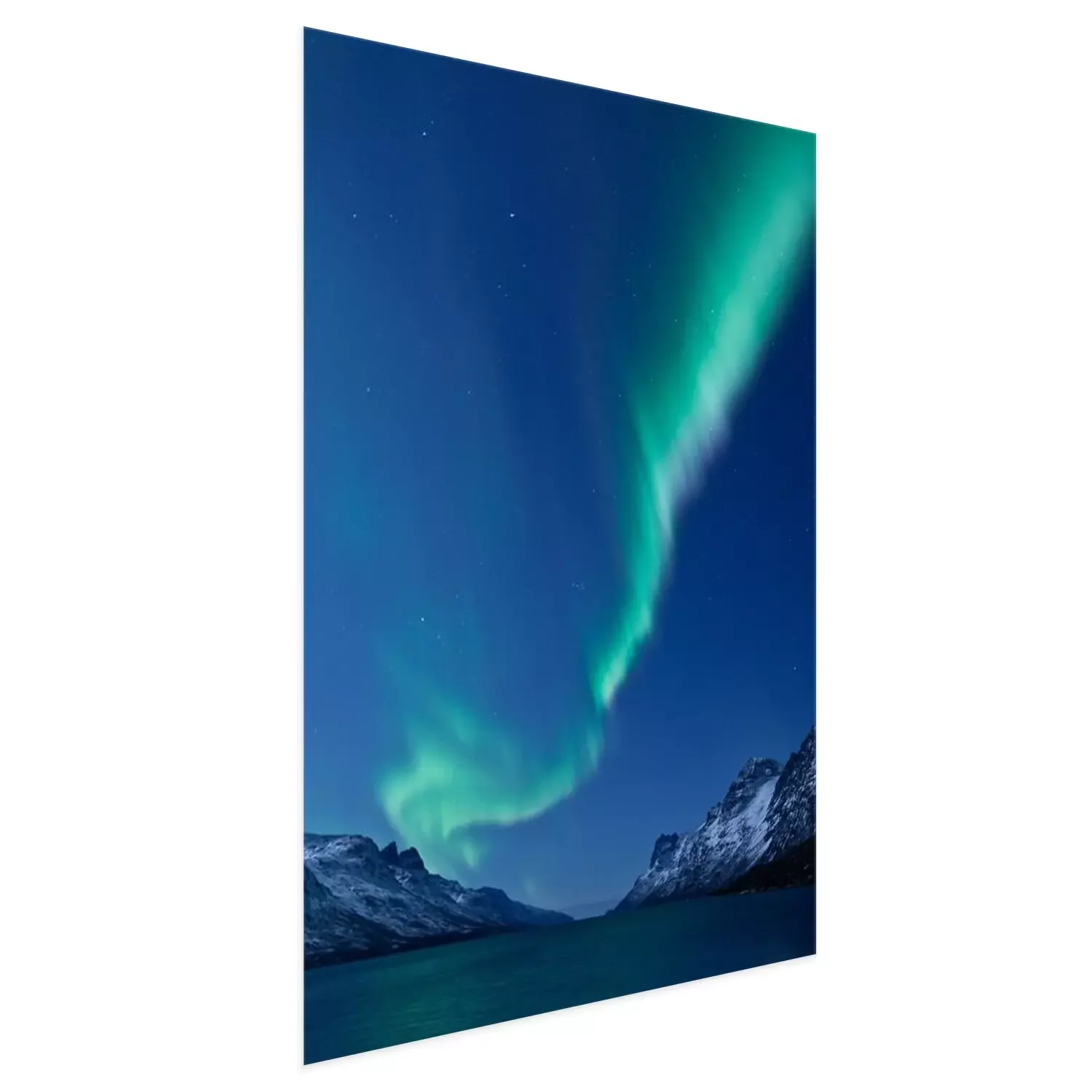Poster: Natürliches Polarlicht inmitten eines Fjordes