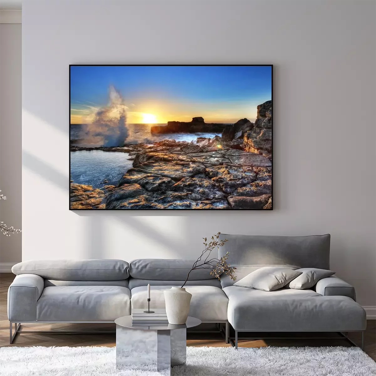 Poster: Natur der auf die Felsen treffenden Wellen