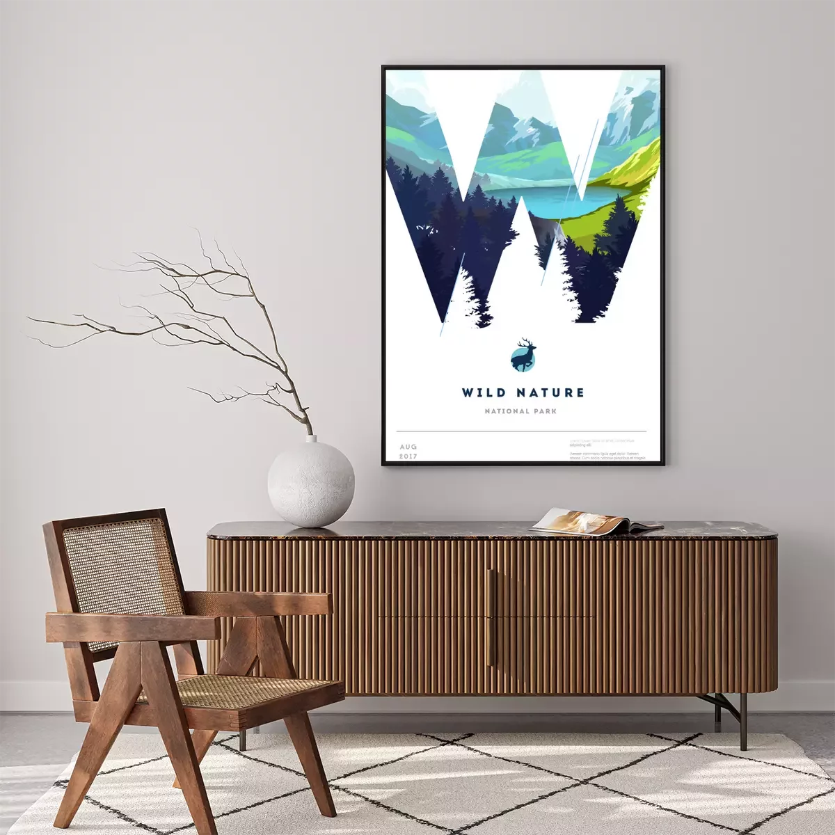Poster: Natur und Landschaften eingeschlossen in Buchstabenform