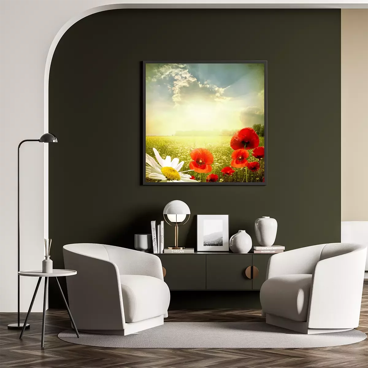 Poster: Natur und Landschaften Wiese mit Mohnblumen und Gänseblümchen